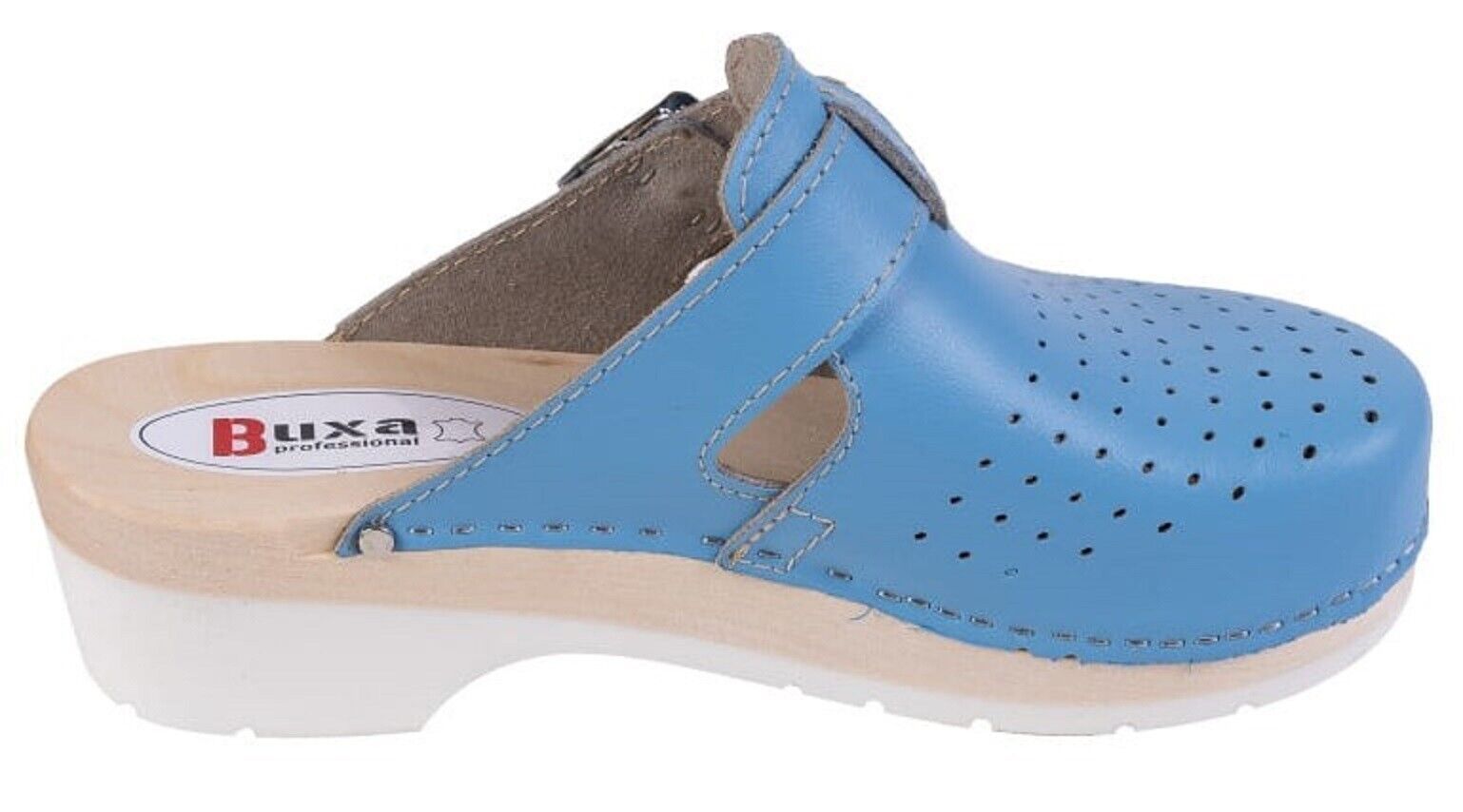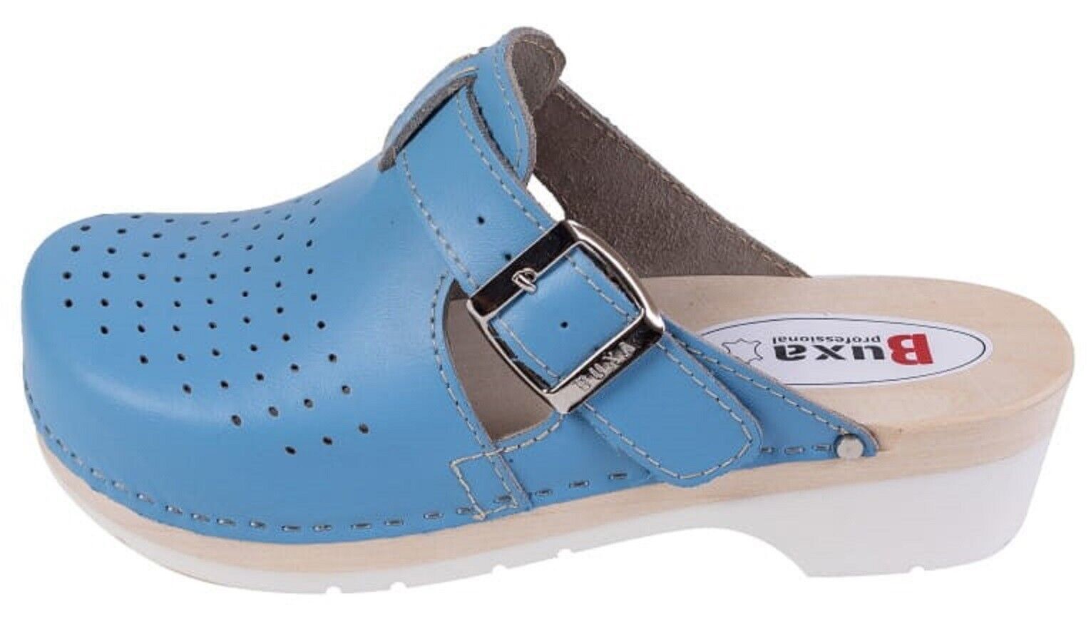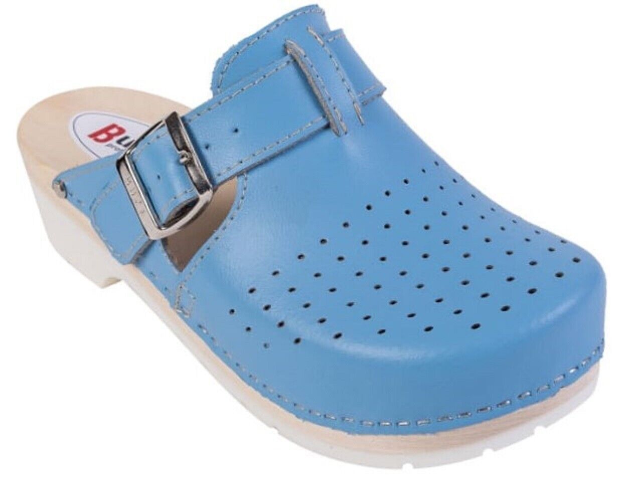 Unisex Schweden HOLZ CLOGS Clogs mit PU- Gummi-Laufsohle Gr. 46 BLAU *** Obermaterial - Naturleder *** Anatomische geformte Innensohlen aus Naturholz - nicht lackiert *** Aussensohle - Rutschfeste PU-Laufsohle *** Absatzhöhe: 5,00 cm *** Neu *** Sehr hochwertige Verarbeitung *** Ein reines Naturprod