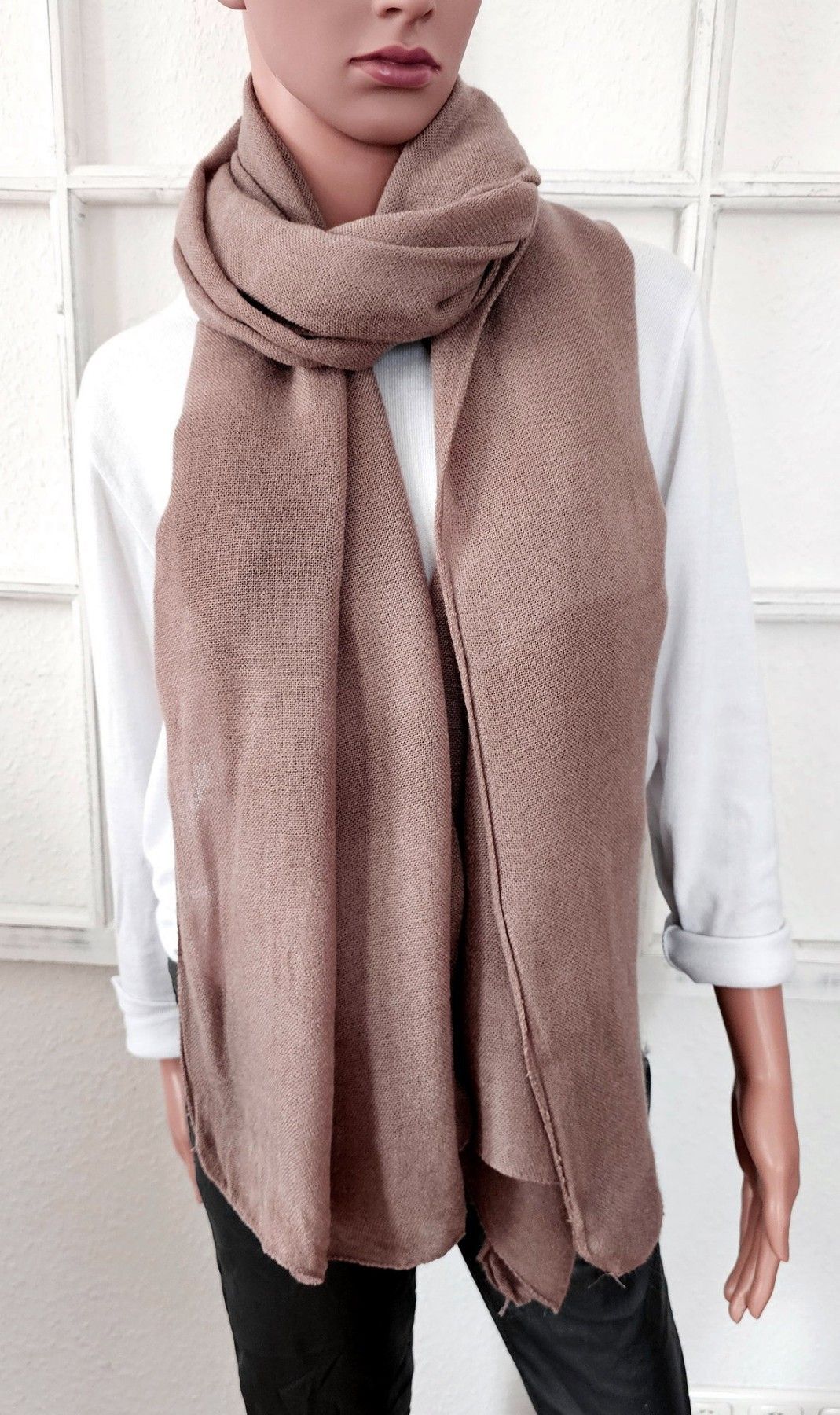 Unisex weicher Winterschal Strickschal uni 80 cm x 220 cm Viskose/Wolle Taupe