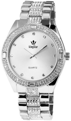• King Star 1800058-003 Unisexuhr Metallarmband silberfarben Analog Quartzwerk Stein