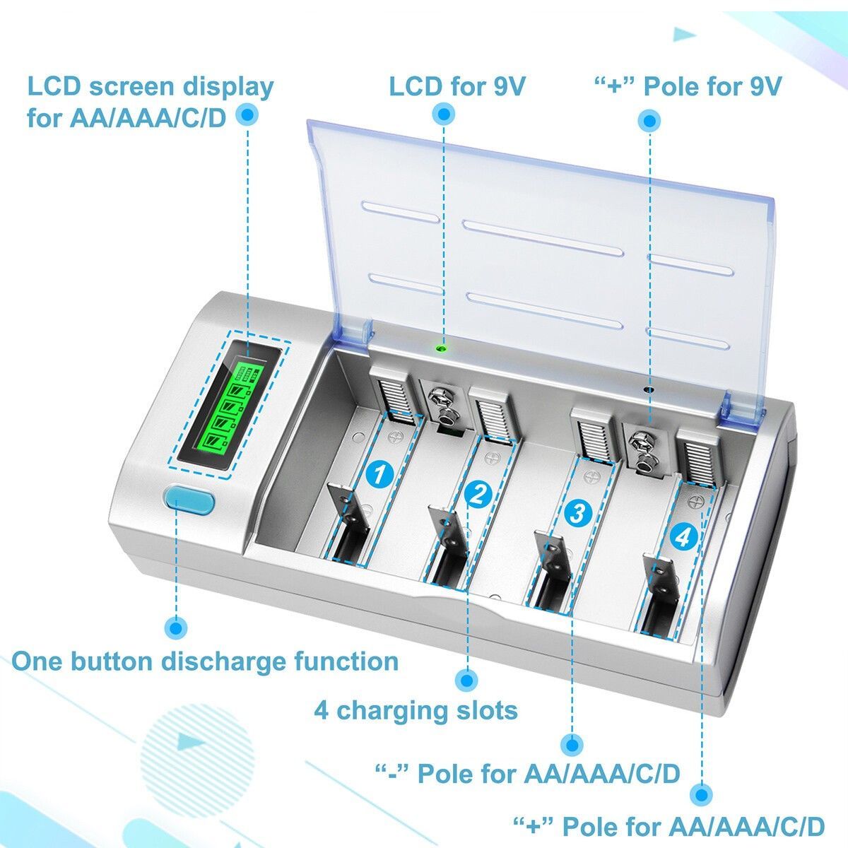 Universal 4 Slots LCD Batterieladegerät Für AA AAA SC C D 9 V Ni-MH Ni-CD Akku
