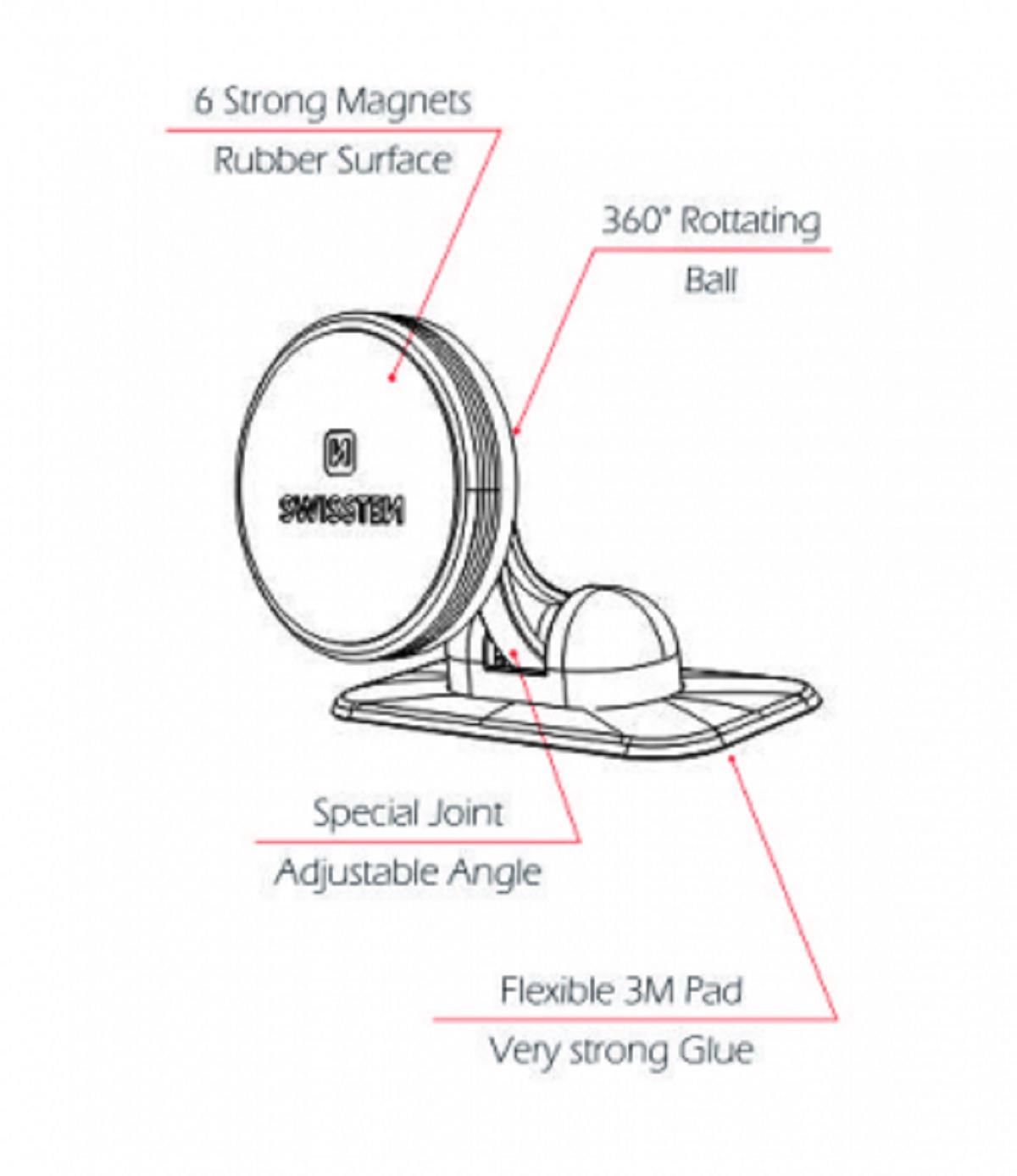 Universal Auto-Halterung mit 6 Magneten und 3M-Klebeband schwarz