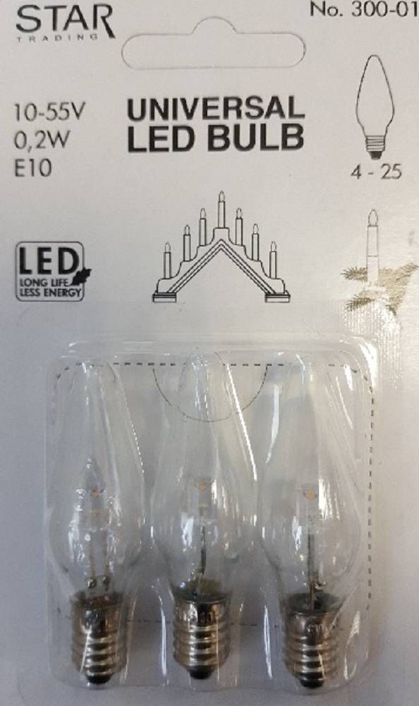 Star Trading Universal LED Glühbirne E10 3er klares Glas 0,2W 10-55V 4,5lm 300-01