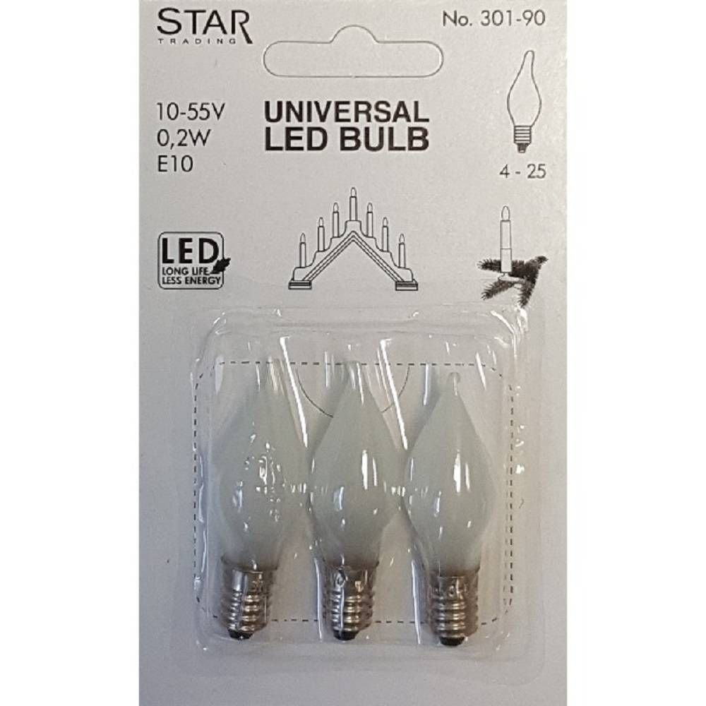 Star Trading Universal LED Glühbirne E10 3er satiniertes Glas 10-55V 0,2W 301-90