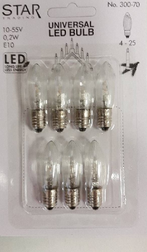 Star Trading Universal LED Glühbirne E10 7er klares Glas 10-55V 0,2W 300-70