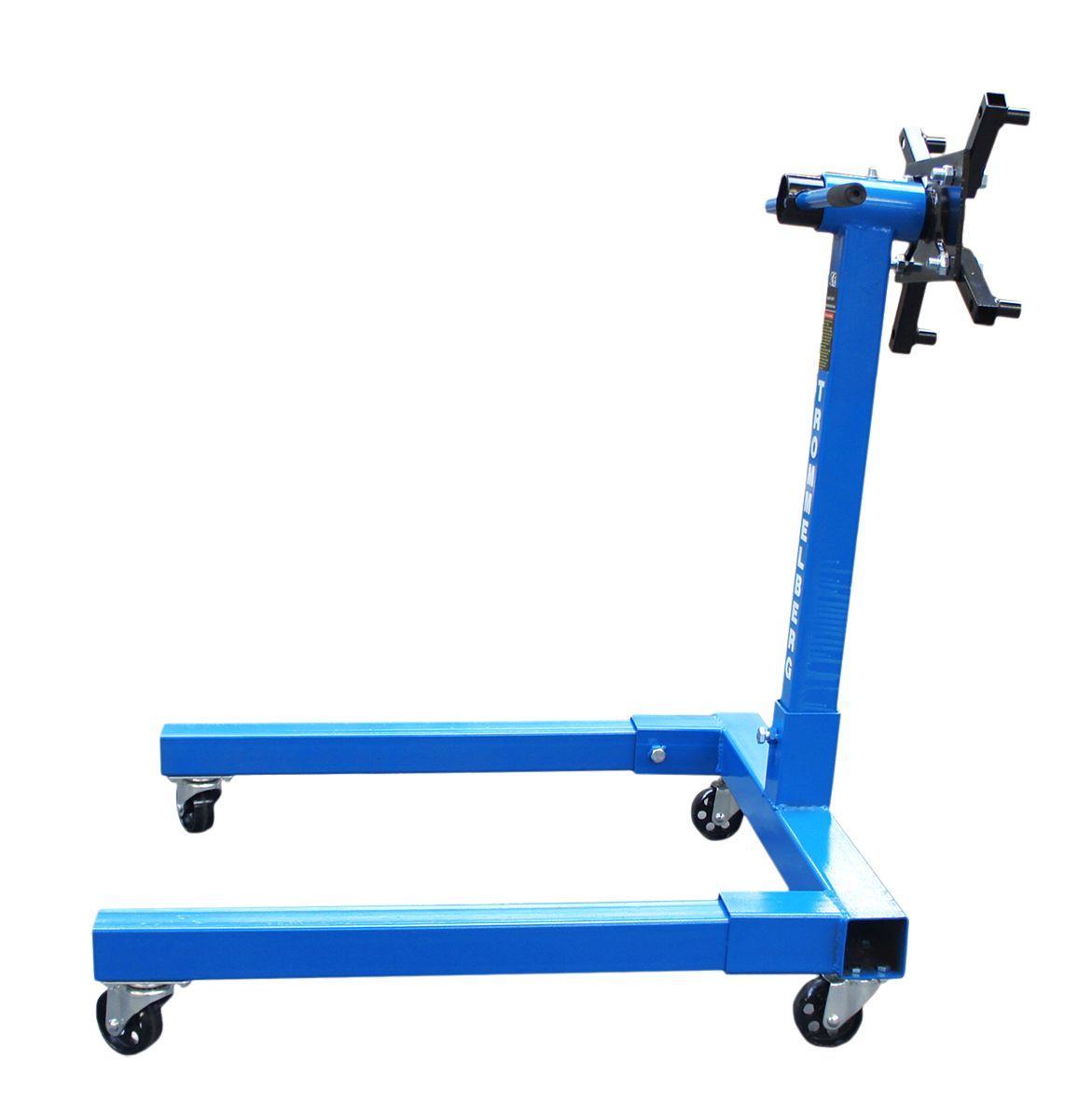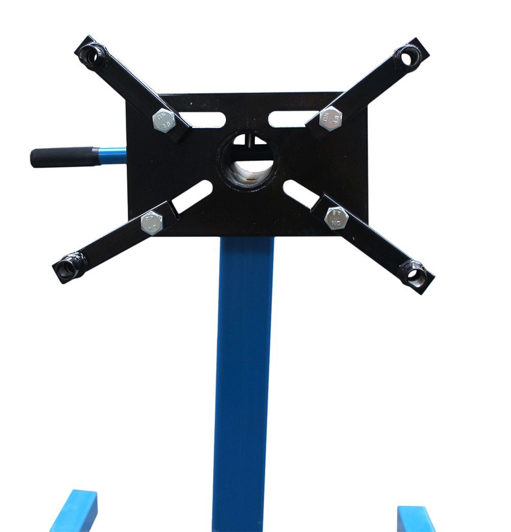 Vorrichtung zum Halten von Motor oder Getriebeblock mit Drehblock und Universalanschlag. Eigenschaften • Anschlagmöglichkeit und Positionieren im Bereich 360° • Die Höhe des Stützwagens ist so konzipiert, dass der Halterahmen möglichst nahe an den Motorraum gebracht werden kann • Hergestellt aus hoc