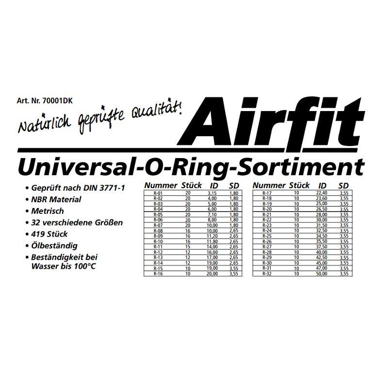Universal O-Ring Sortiment AIRFIT, 419 Stück 32 Größen, Dichtung, Dichtring