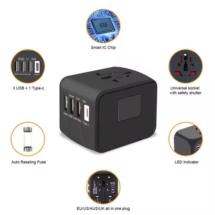 Universal Reiseadapter internationaer Reisestecker weltweiter Stromadapter 4xUSB