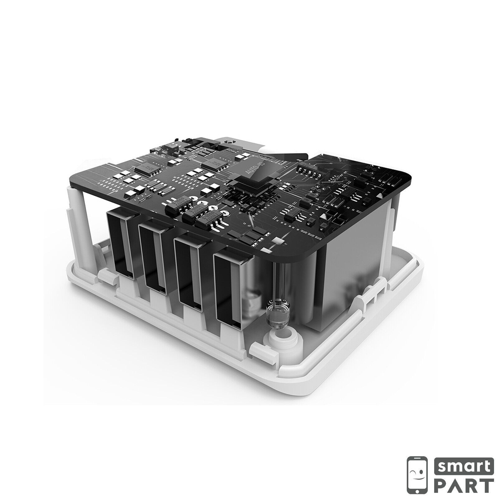 Der Adapter ist aus einem sehr hochwertigen Kunststoff gefertigt. Beim einstecken leuchtet ein kleiner runder Kreis am Logo im dezenten weiß Ton. Die Spannung wurde nicht getestet. Jeder der vier Ports funktioniert ohne Probleme.