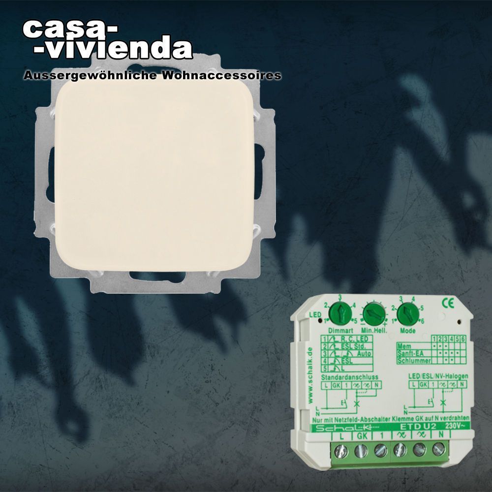 casavivienda Außergewöhnliche Wohnaccessoires ... ...anders als alle Anderen... Universal-Einbau-Tastdimmer, 0-500W (auch für LED-Dimmung) - Lasttyp R, L, C - KLEIN BUSCH-JAEGER SI® Weiß RAL1013 Verwendung: p assend für KLEIN BUSCH-JAEGER SI® Weiß RAL1013 p assend für Schalterdoseneinbau (tiefe Scha