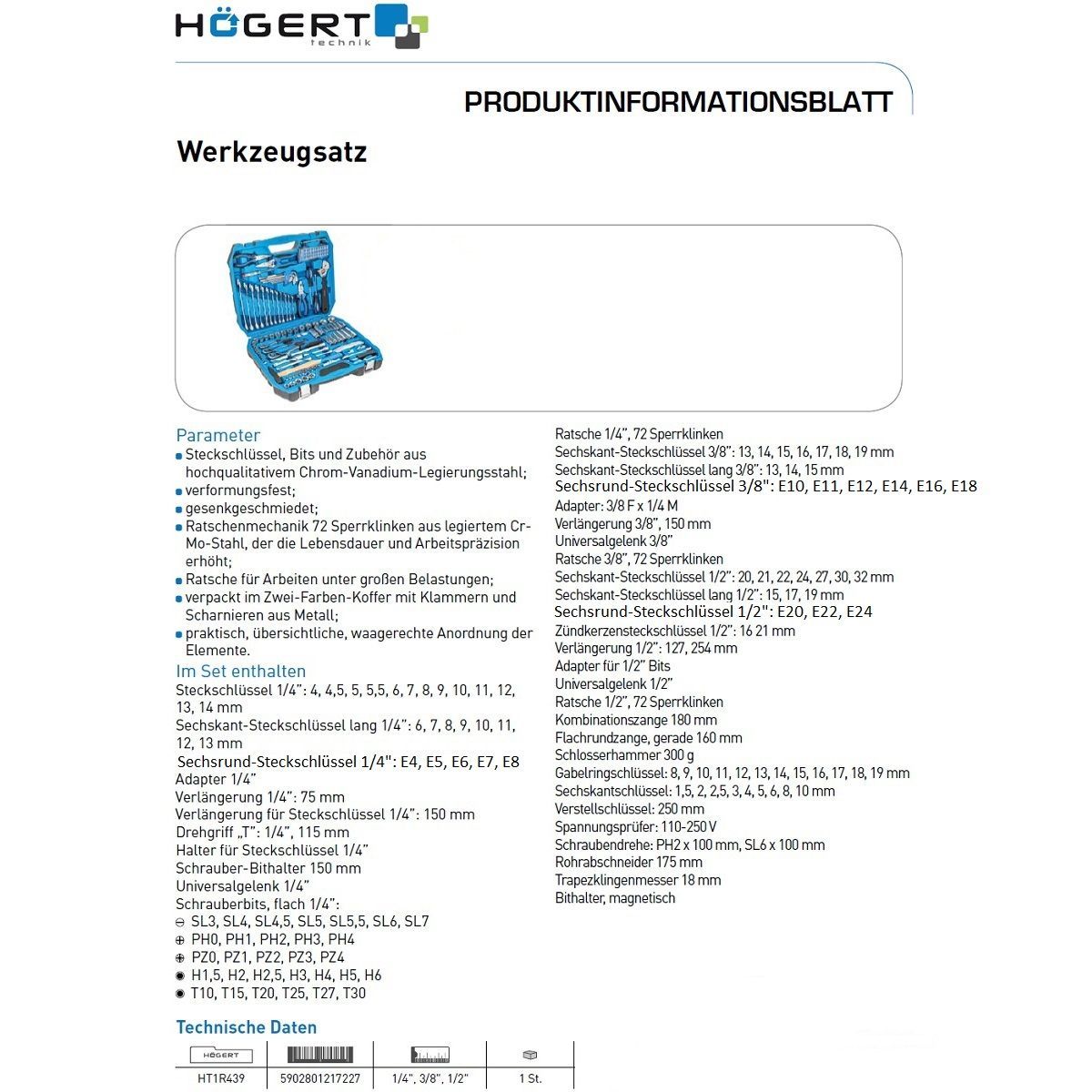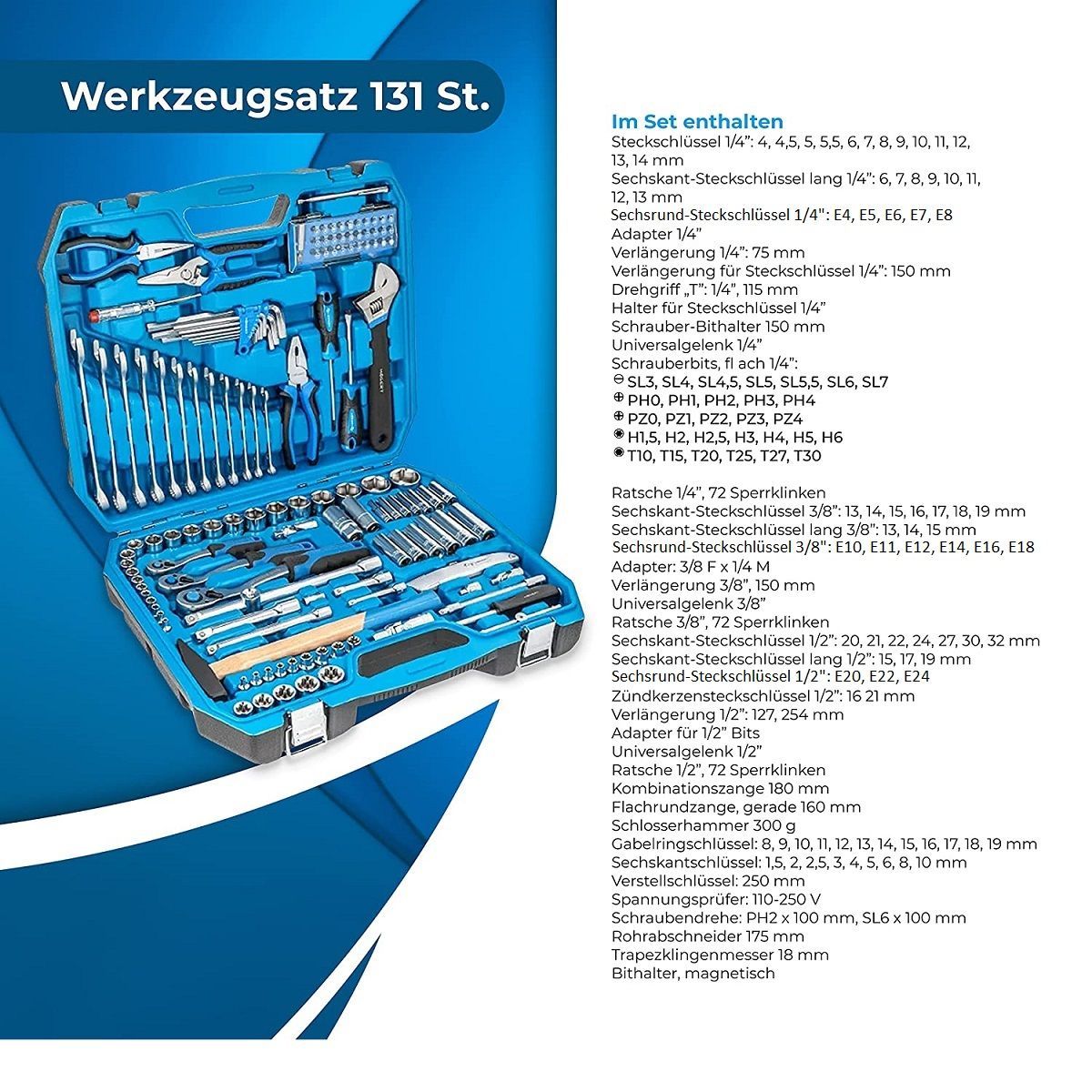 Universal Werkzeugkiste Werkzeugkoffer Högert HT1R439 131-teiliges Sortiment