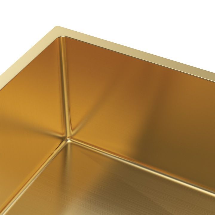Unterbau-Spülbecken Edelstahl Gold 74x44 cm Siphon Technische Daten: Montageart: Aufsatz- Unterbau Material: Edelstahl Oberflächenveredelung: Gebürstete Satinierung Farbe: GOLD Maße der Spüle: 740 mm x 440 mm x 210 mm Maße des Beckens: 700 mm x 400 mm Materialstärke des Beckens: 0,8 mm Materialstärk