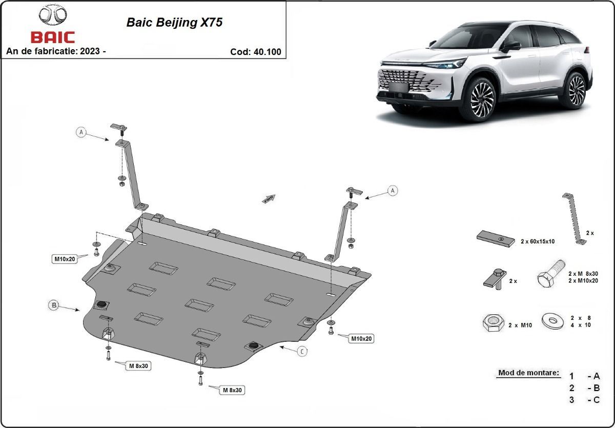 Unterfahrschutz für Motor der Marke Baic Beijing X75 - (2023-2024)