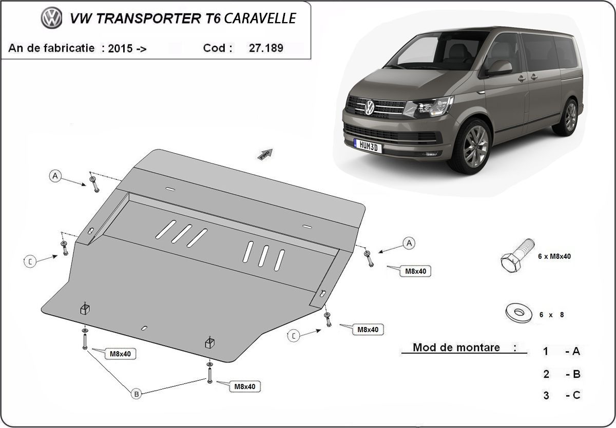 Unterfahrschutz für Motor der Marke Volkswagen Transporter T6 Caravelle - (2015-2024)