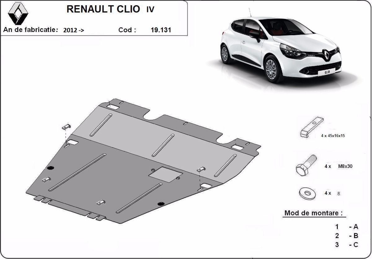 Unterfahrschutz für Motor und Getriebe aus Stahl für Renault Clio 4 - (2012-2019)