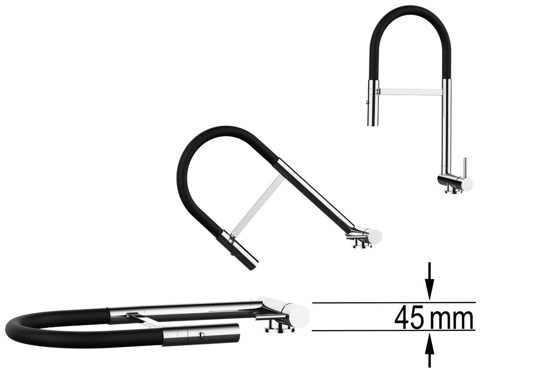 Unterfenster Vorfenster Küchenarmatur klappbar auf 4,5 cm, 2Strahl Brause - Schwarz