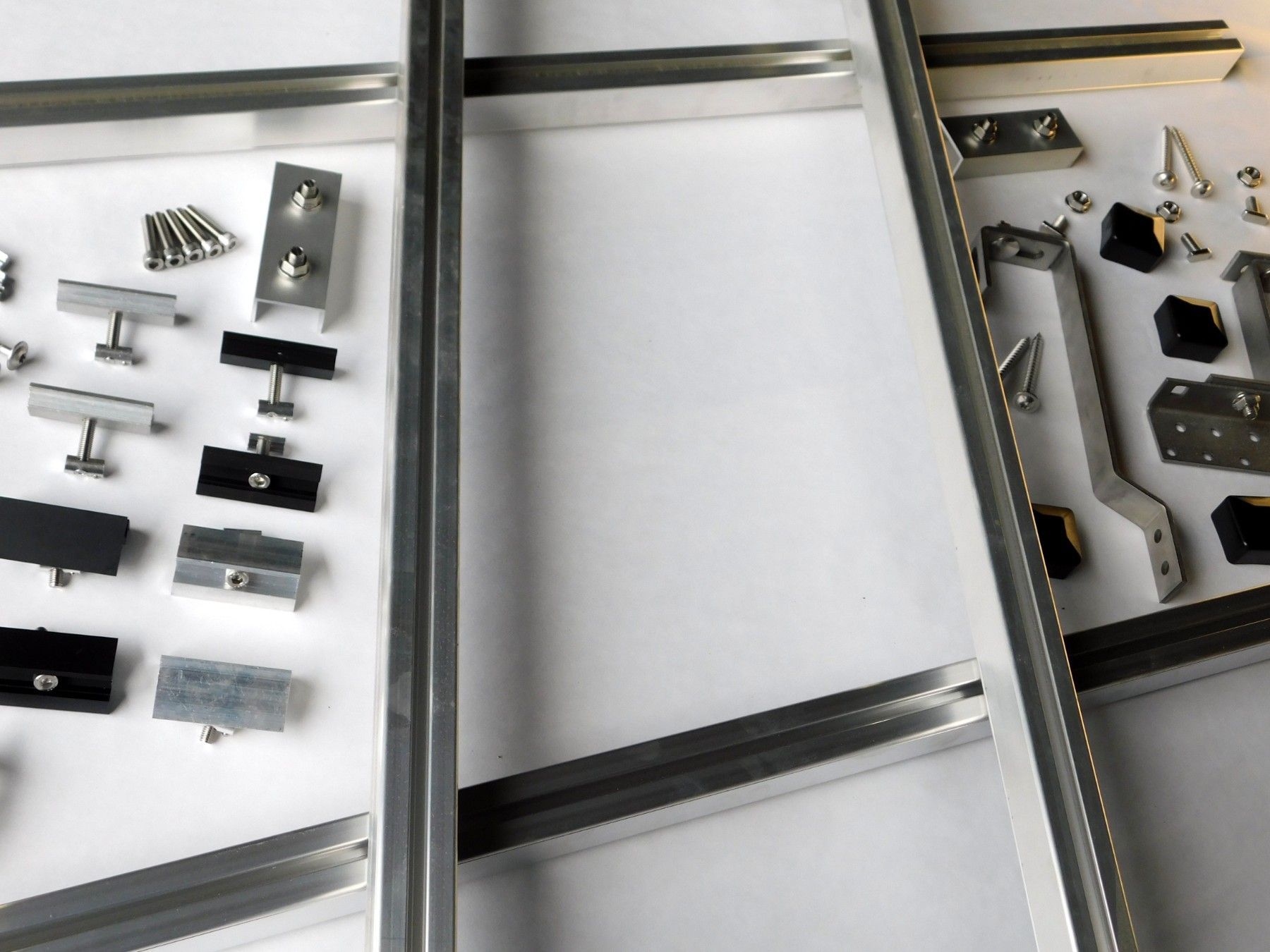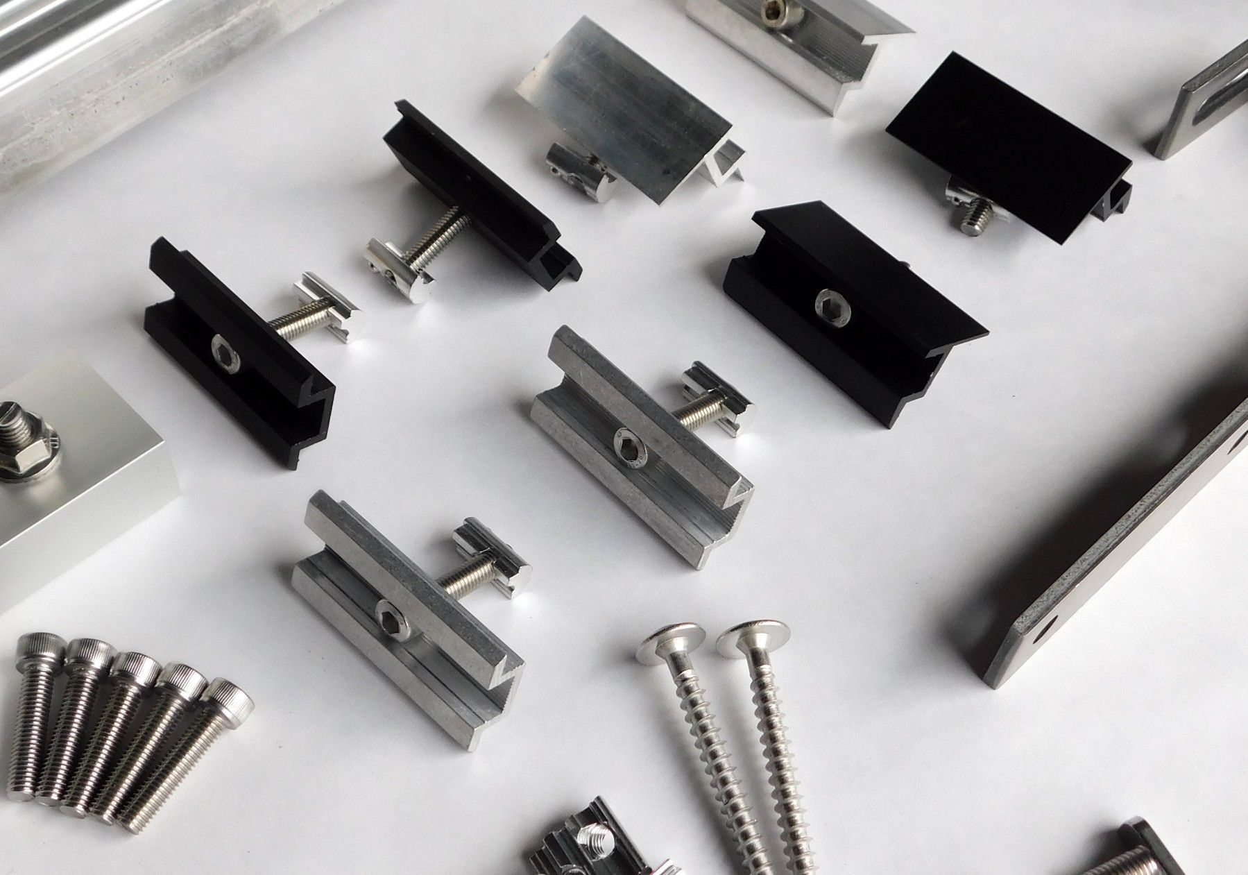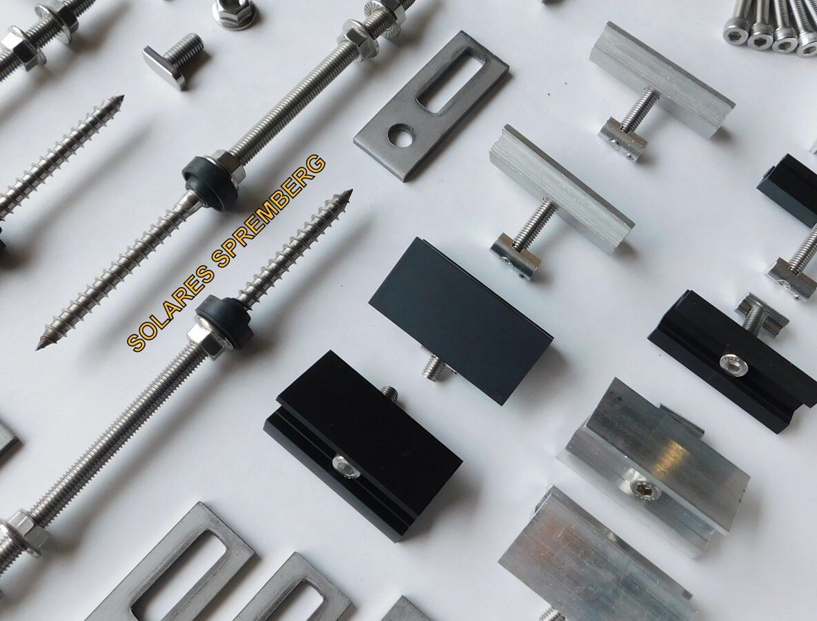 Montagesatz für Ziegel, Schiefer, Bitum, Well, Trapezblechdach f. Balkonkraftwerk - Komplettlösung Schrägdach für 1-5x PV-Module auf Ziegeldach Schieferdach Bitumdach Welldach Trapezblechdach horizontal verlegt Hochfester Montagesatz aus perfekt aufeinander abgestimmten Einzelkomponenten für 1-5x Mo