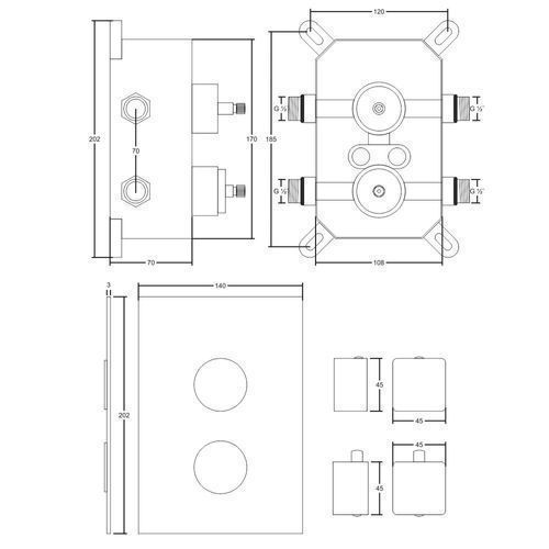 Unterputz Brausearmatur BOX Verdeckter Einbau Mischer Thermostatisch in Chrom