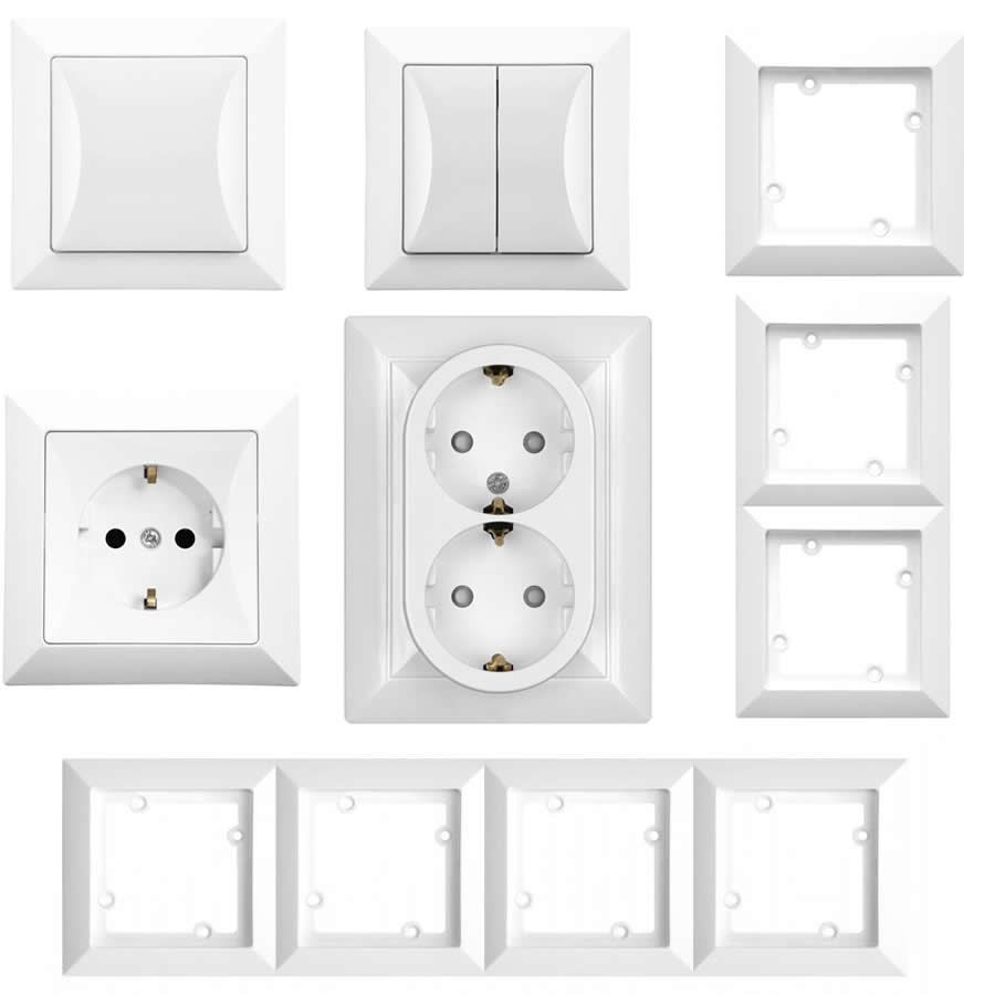 Unterputz Dosen-Serie Opal Weiß Schuko Steckdosen Schalter incl. Rahmen
