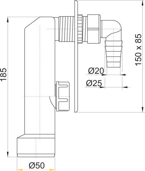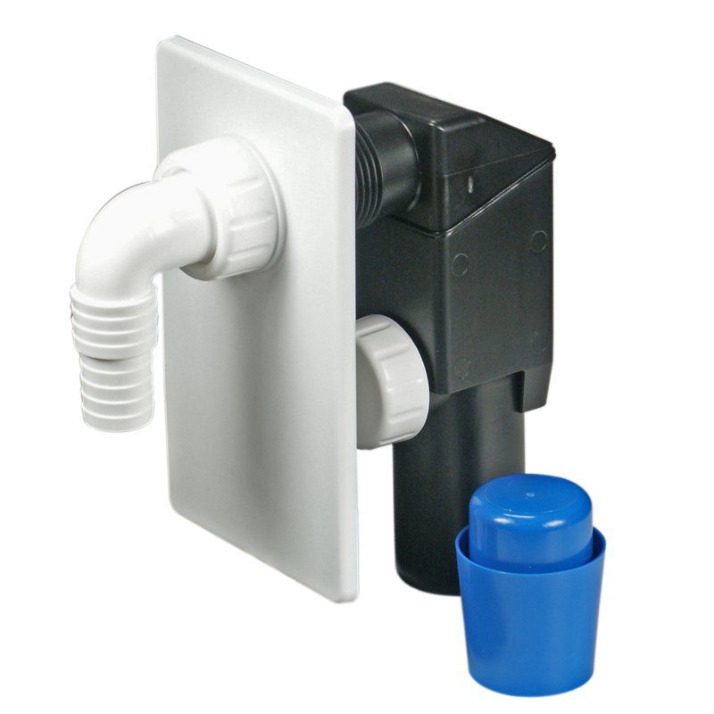 Unterputz Geräte Siphon DN40, DN50 extra klein weiss / chrom
