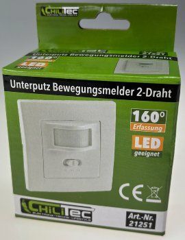 ChiliTec Unterputz PIR-Bewegungsmelder 160° LED geeignet, 2-Draht Technik, weiß