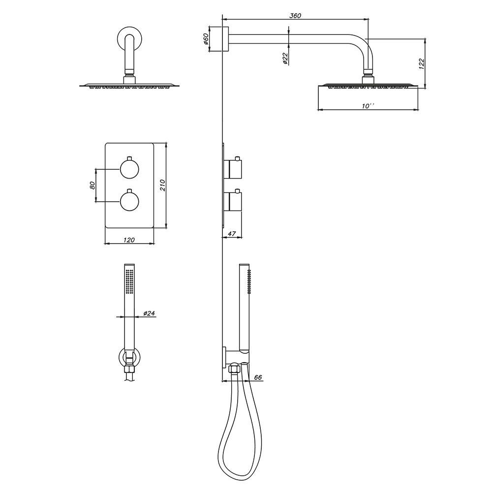 Unterputz Regendusche 25 cm Komplettset mit Wandbrausekopf Arm Grau Gebürstet