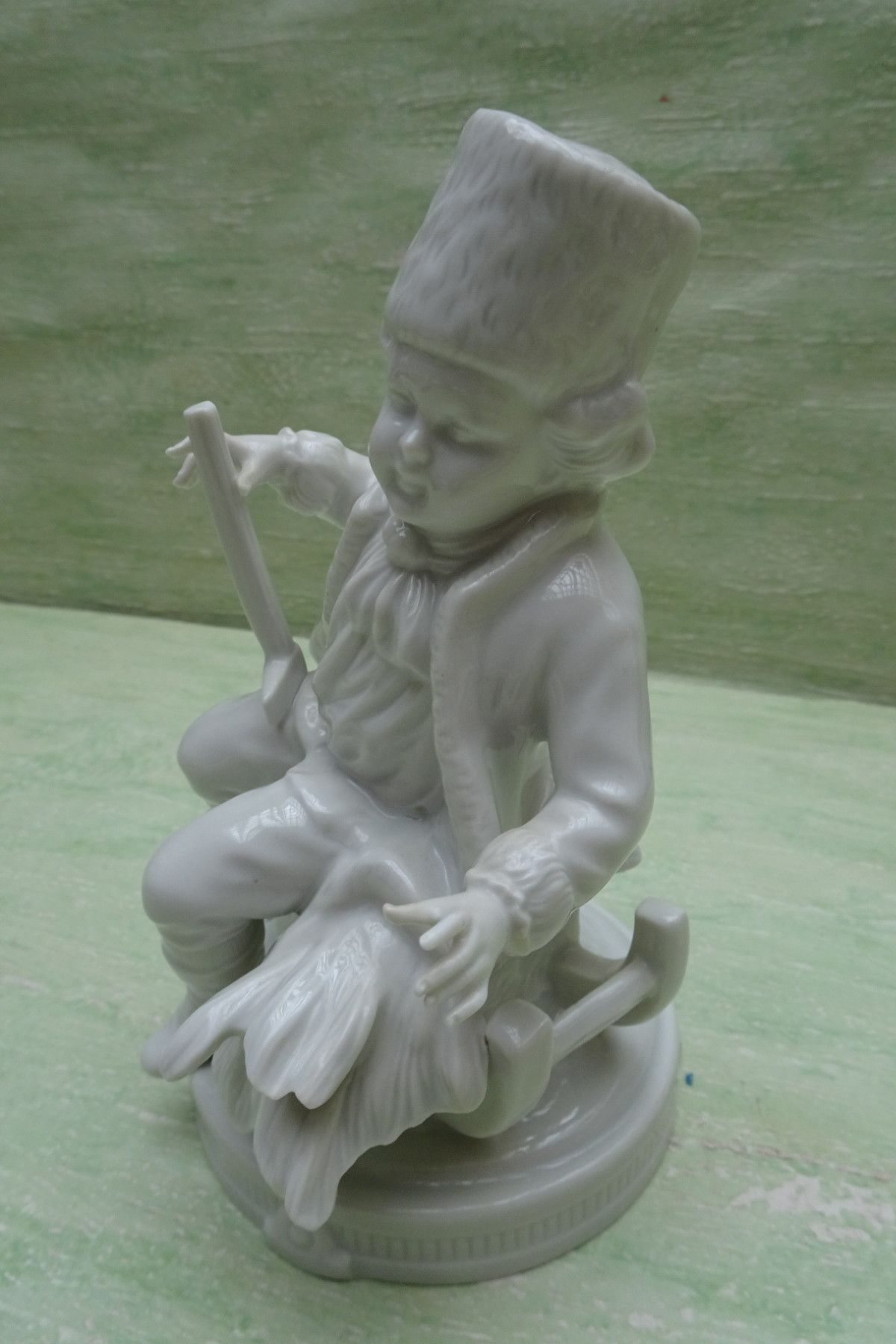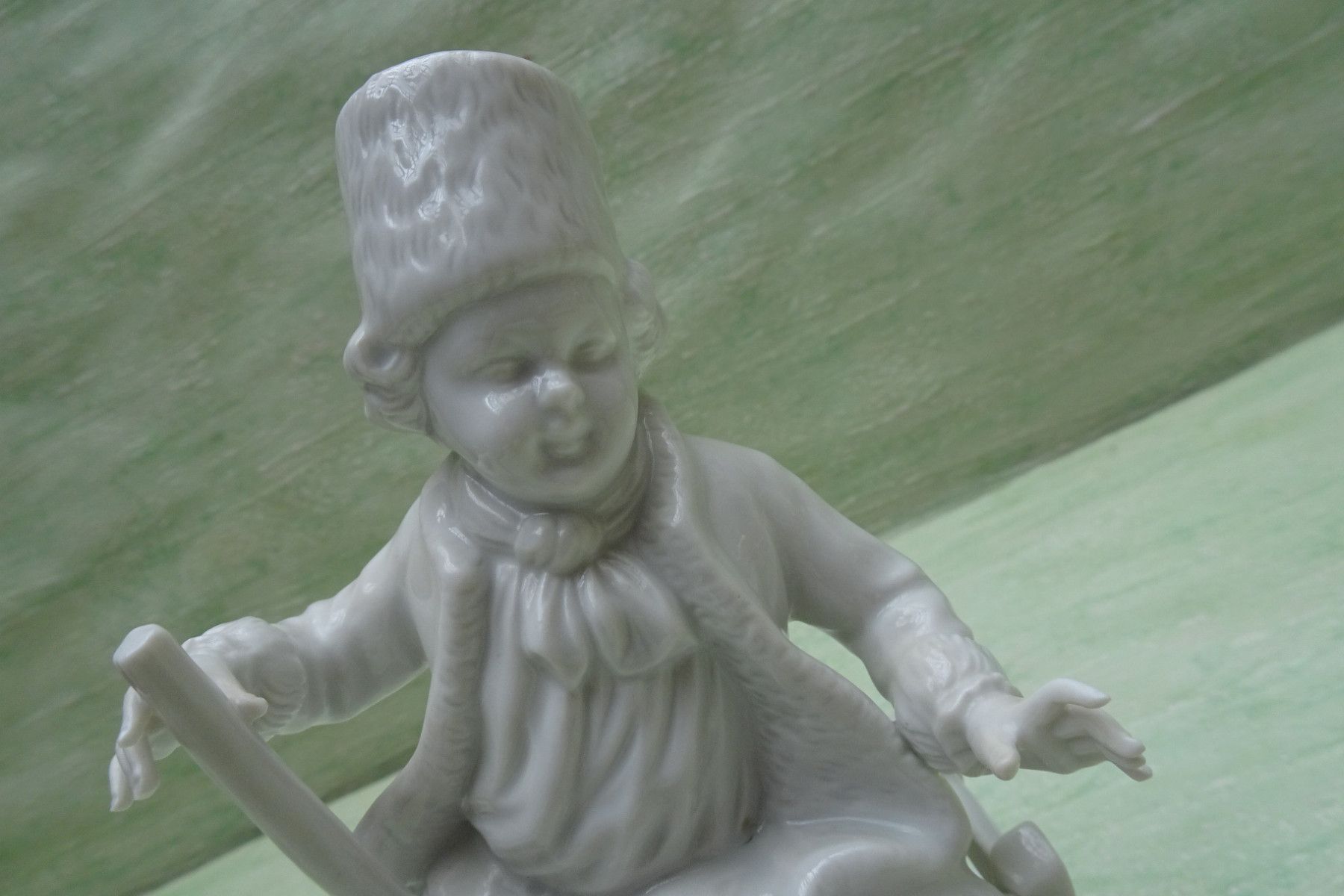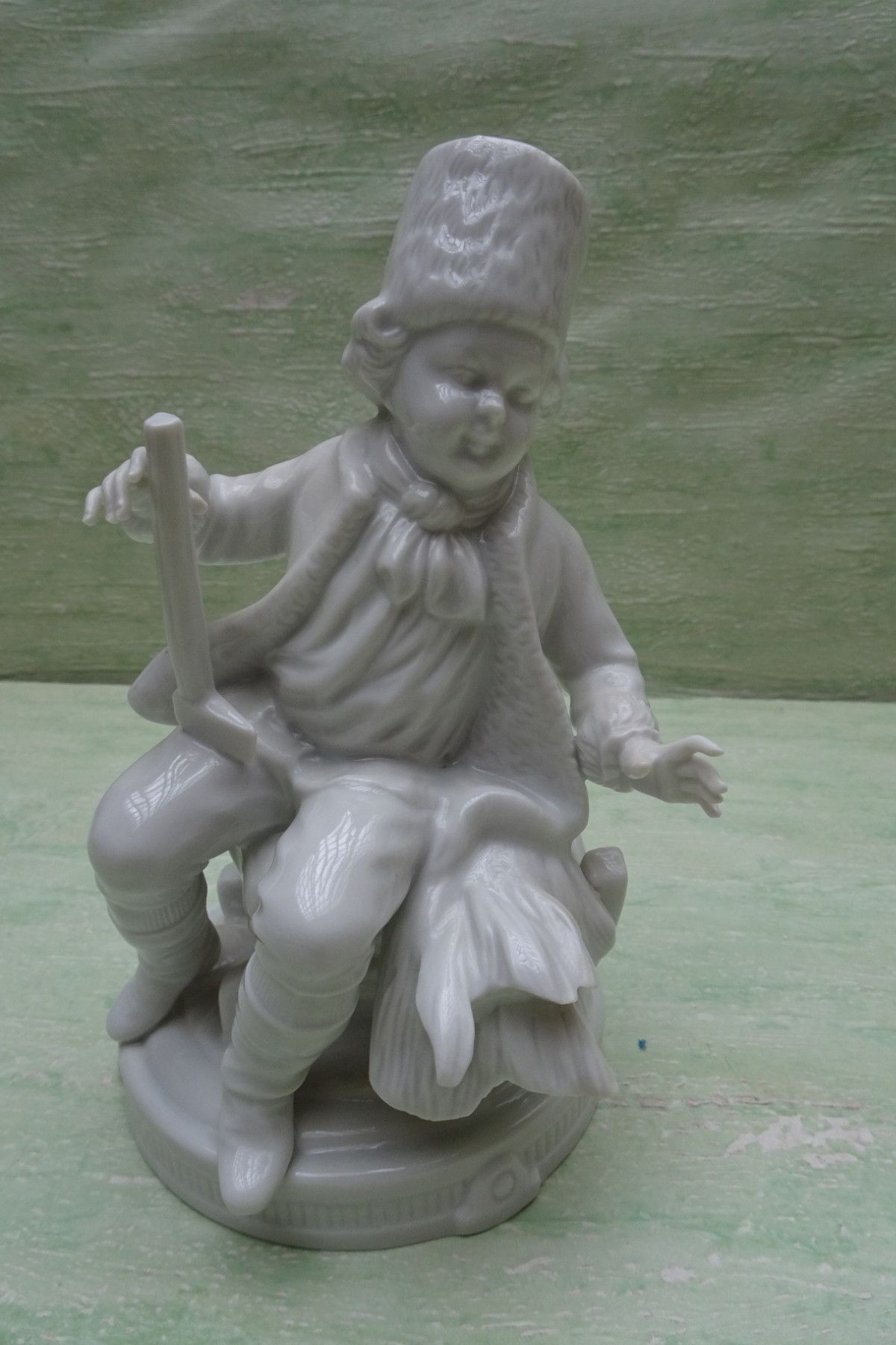 Unterweißbach Thüringen Figur Mann Schlitten Axt Holzhacker weiß ca 17cm