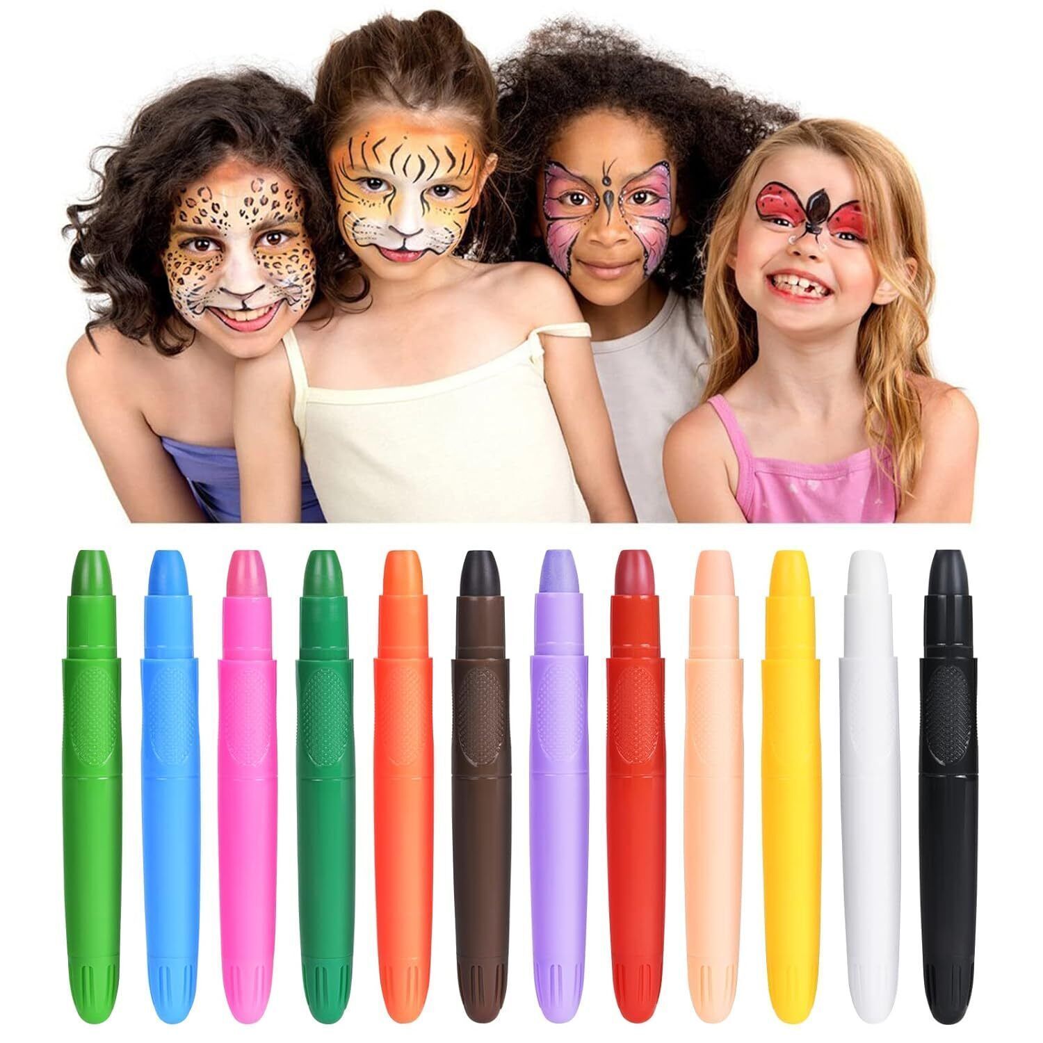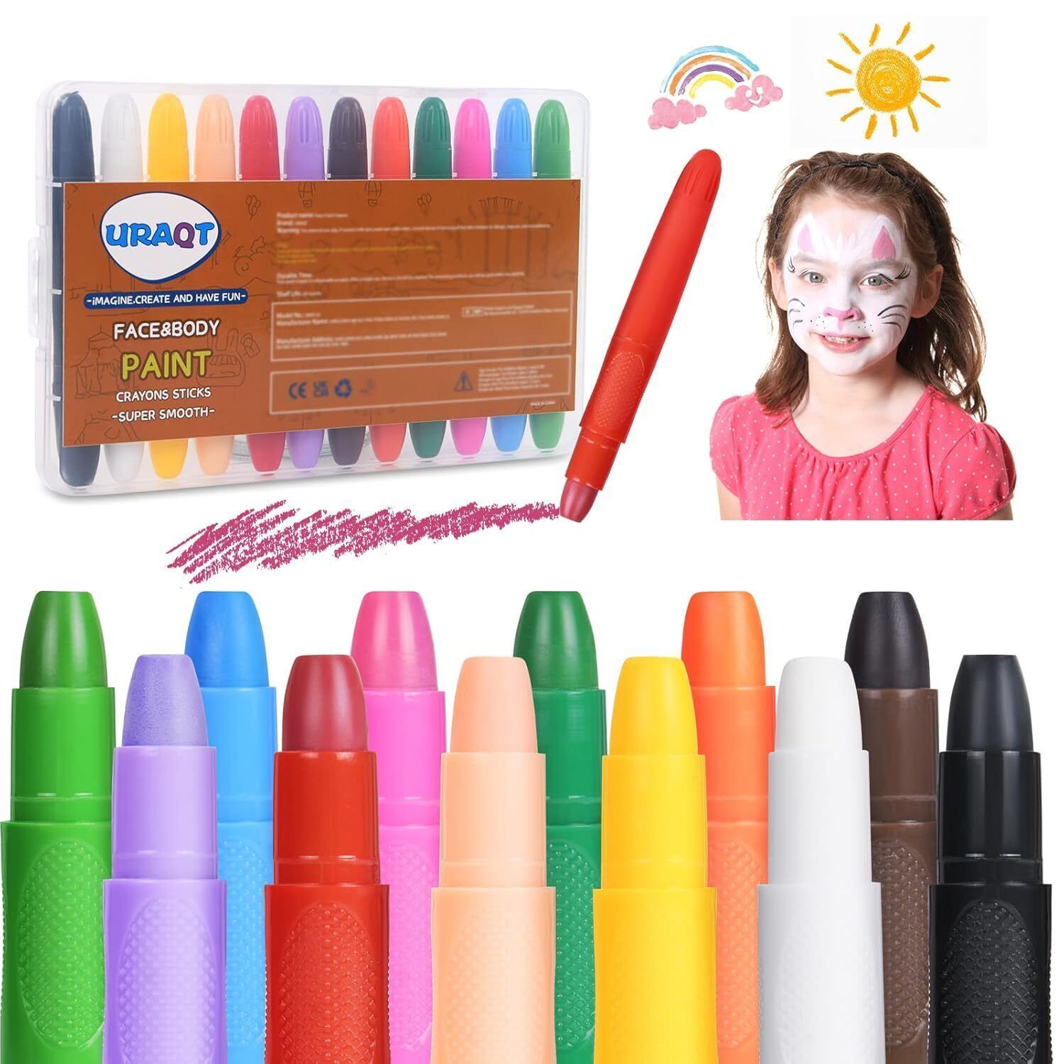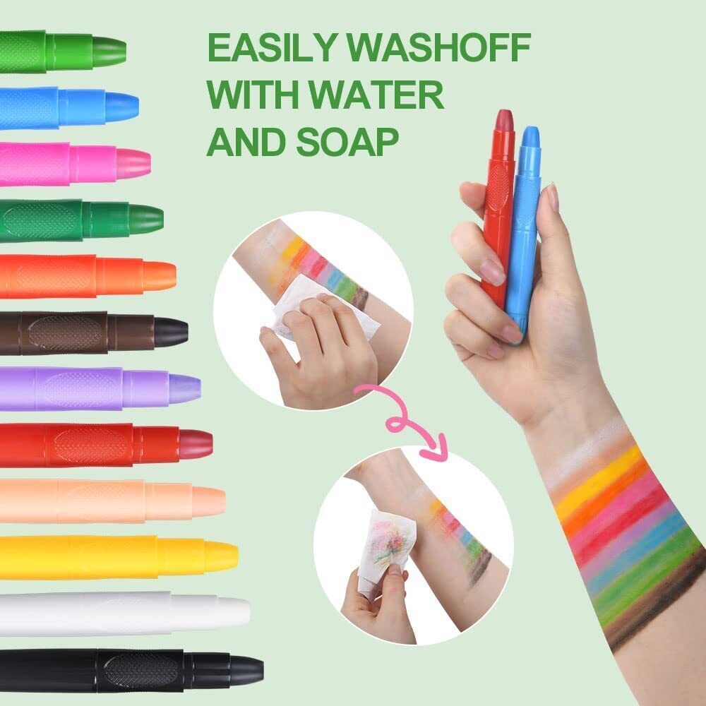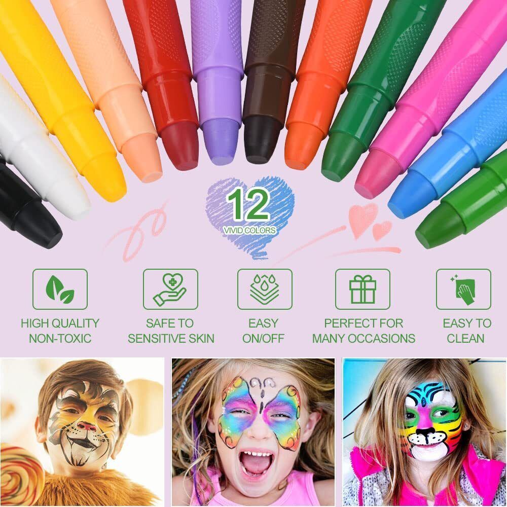 URAQT Schminkstifte Kit 12 Farben Waschbar Kinderschminke Gesichtsfarben Set