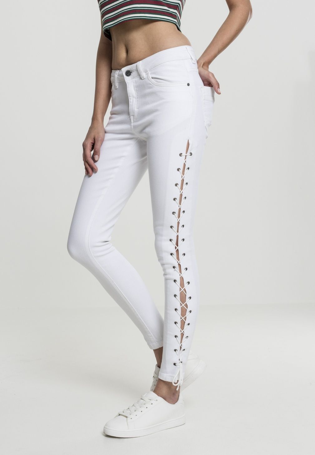 Urban Classics Damen Hose Ladies Denim Lace Up Skinny Pants Grey