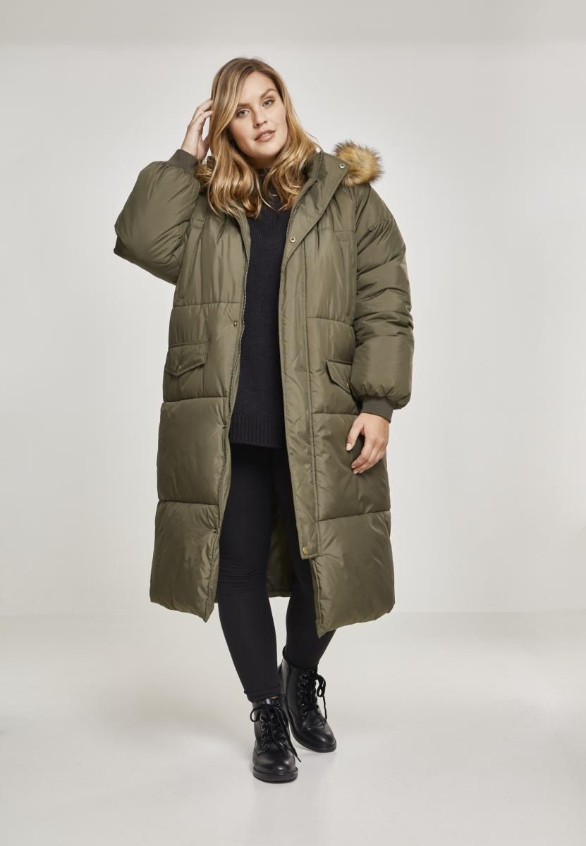Urban Classics Damen Jacke Ladies Oversize Faux Fur Puffer Coat Darkolive/Beige