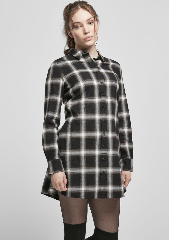 Urban Classics Damen Kleid Ladies Cotton Check Shirt Dress Black/White