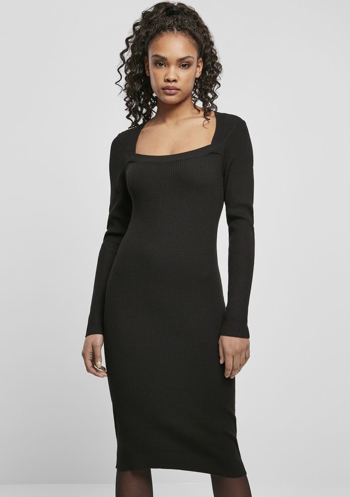 Urban Classics Damen Kleid Ladies Long Knit Dress Black