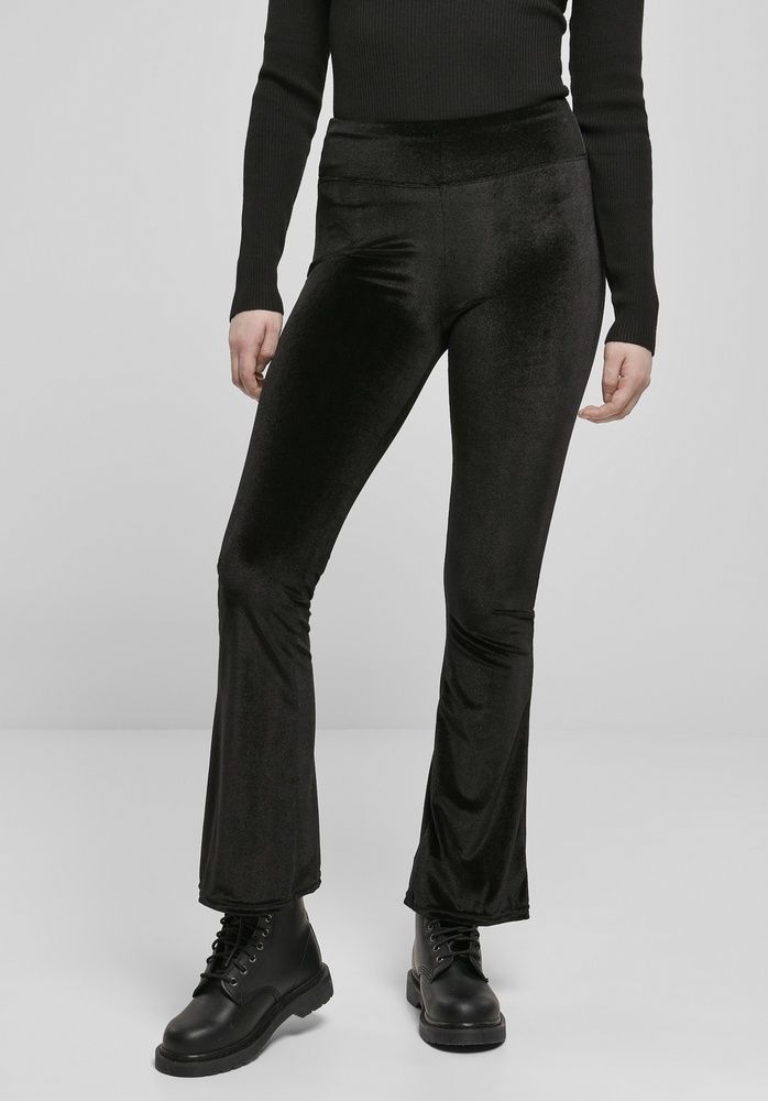 Urban Classics Damen Leggings Ladies High Waist Velvet Boot Cut Leggings Black