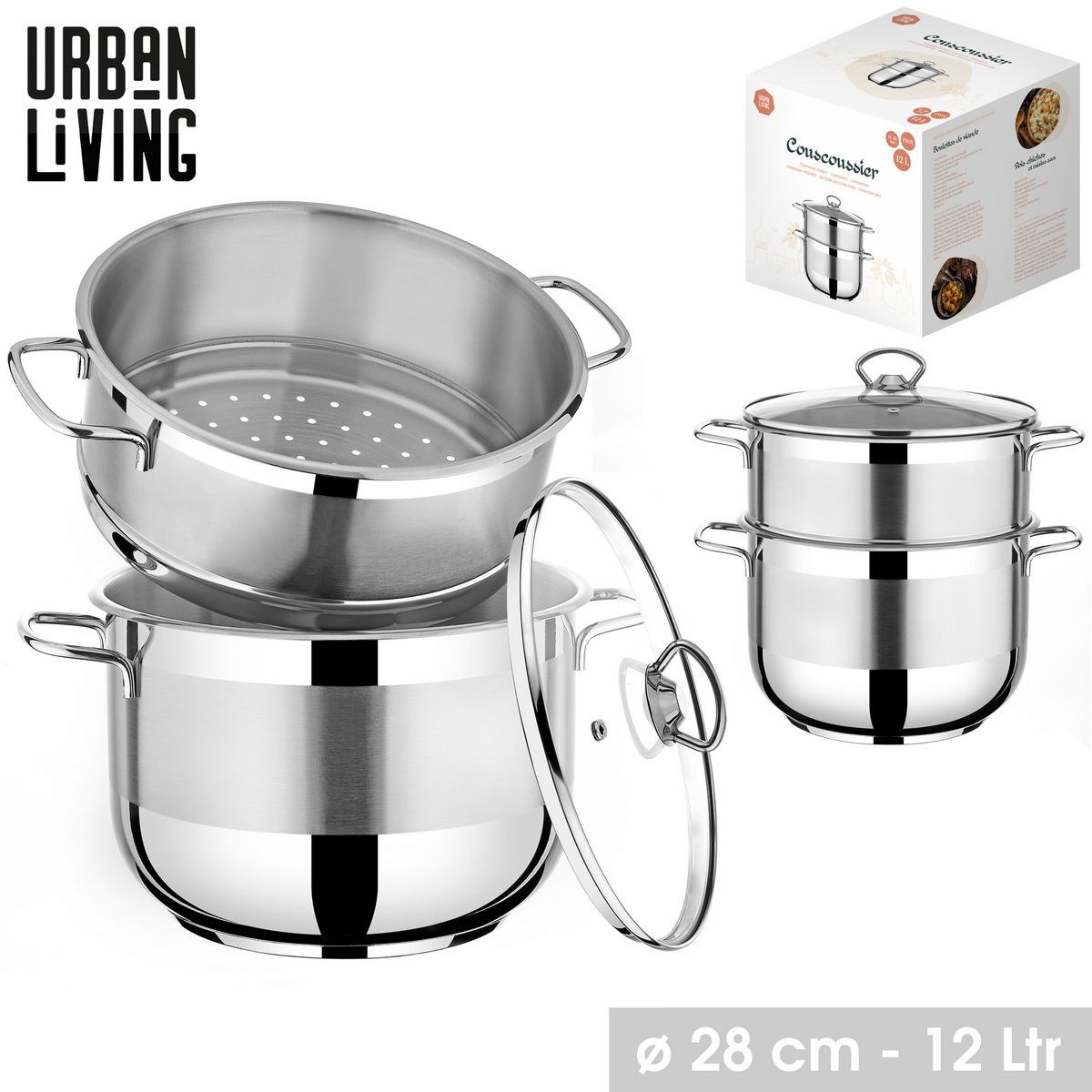 Urban Living 12 Liter Couscous-Topf Ø 28 cm Edelstahl Kochtopf 31322