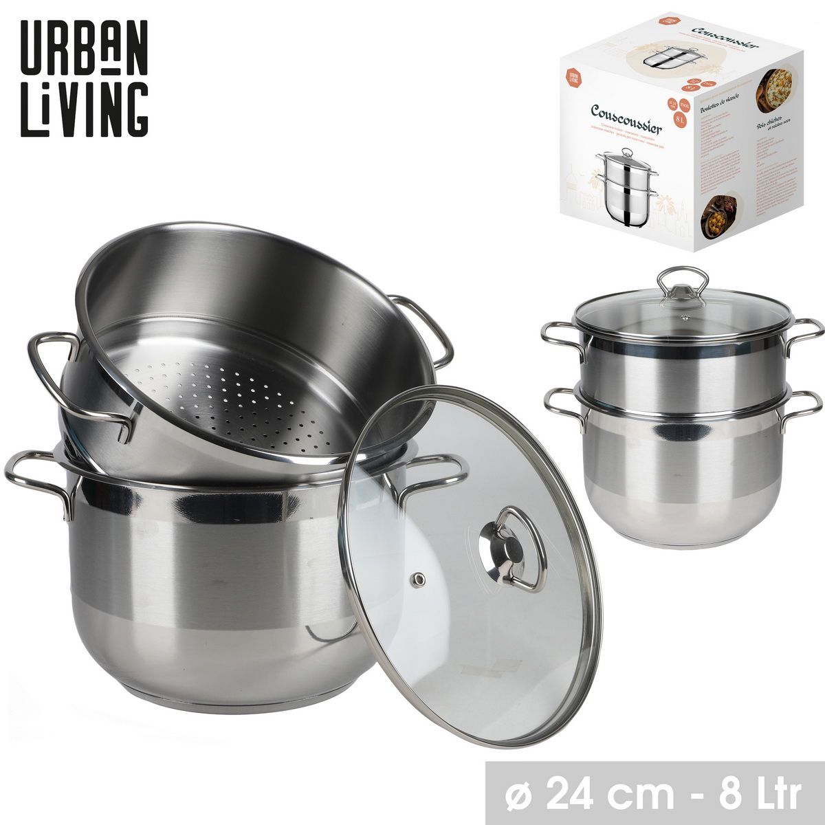 Urban Living 8 Liter Couscous-Topf Ø 24 cm Edelstahl Kochtopf 31321