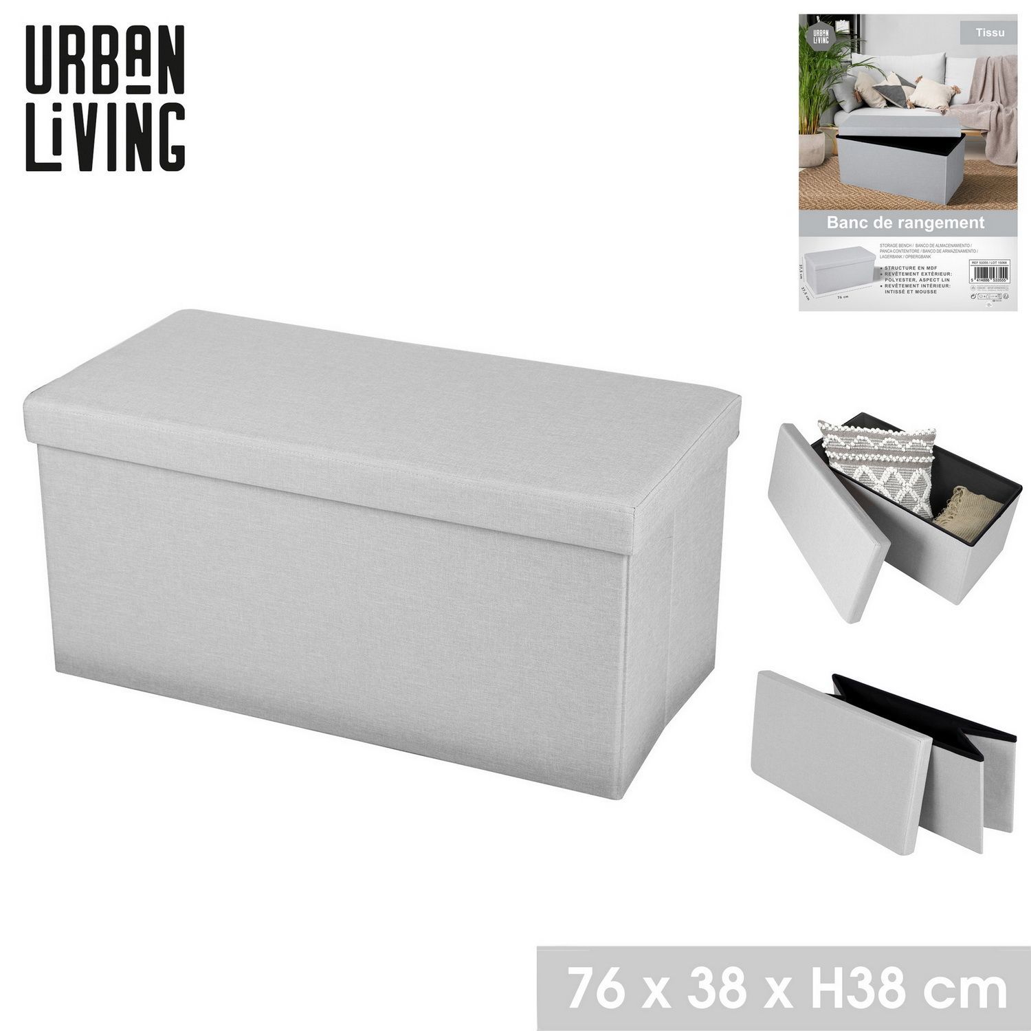 Urban Living faltbare Sitzbank Sitzhocker TISSU Aufbewahrungsbox 53355 hellgrau