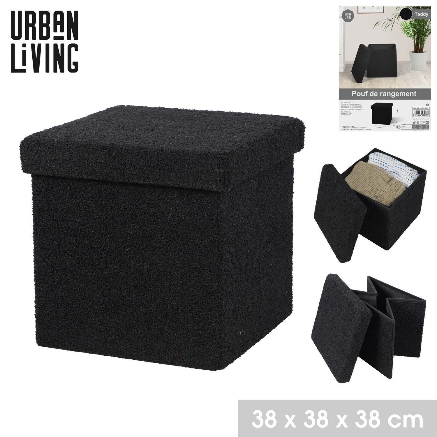 Urban Living Sitzhocker faltbar Sitzwürfel "TEDDY" Sitz-Box 53517 schwarz
