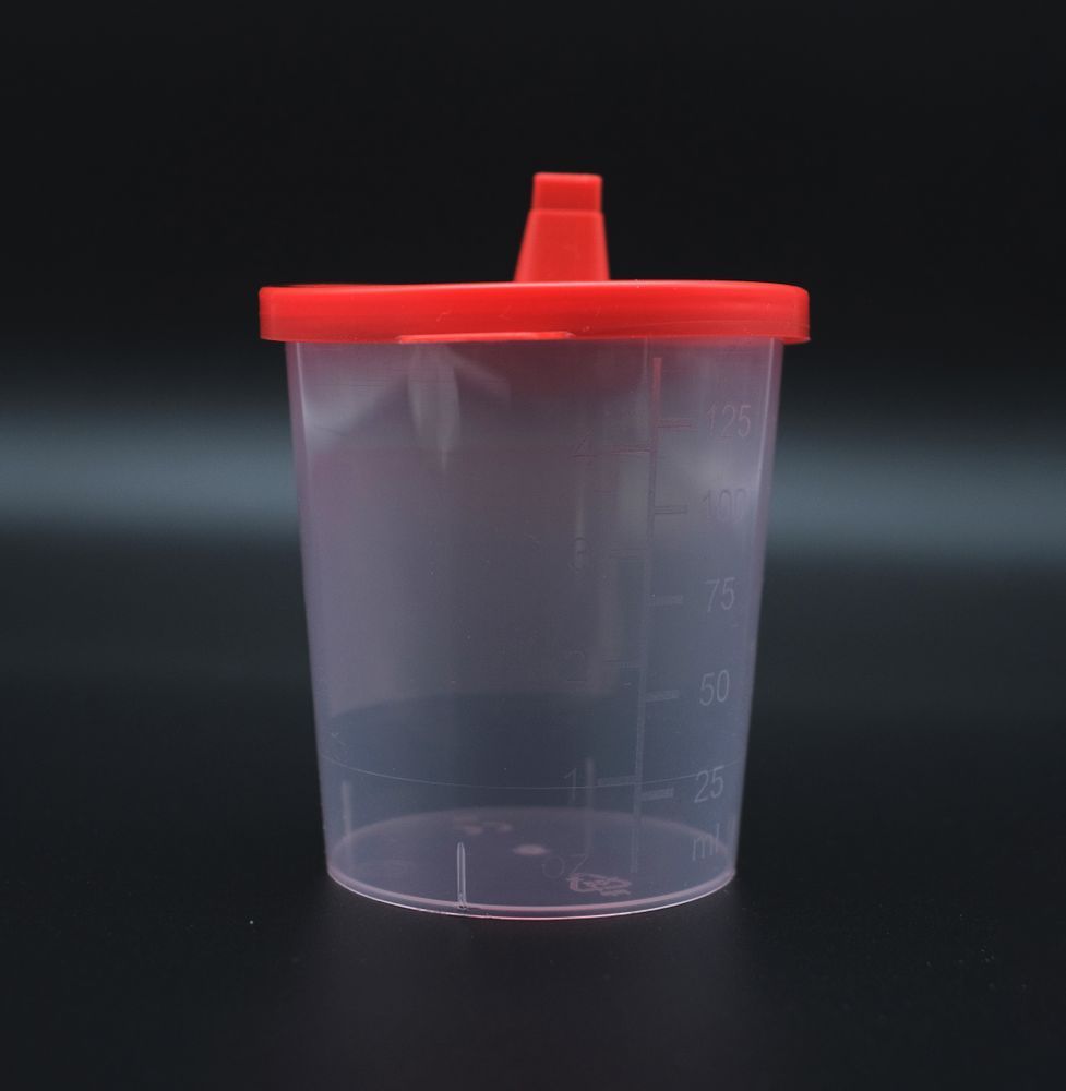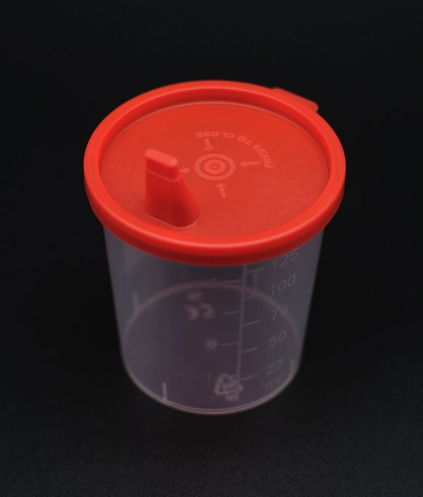 Urinbecher 125 ml, mit Schnappdeckel rot, 100 Stück