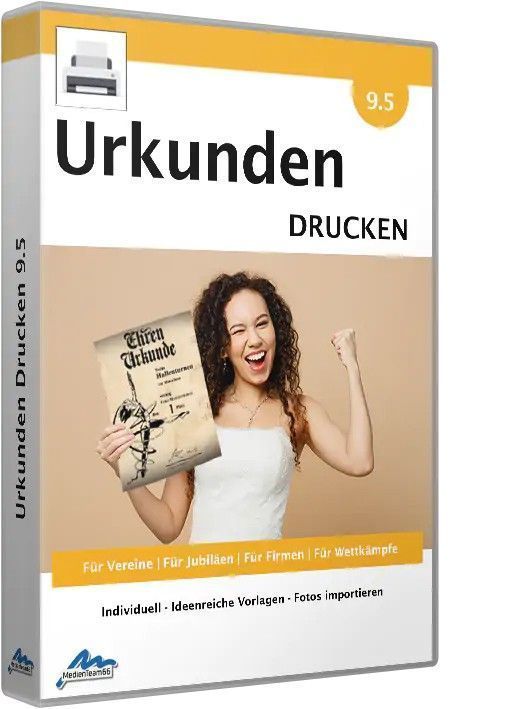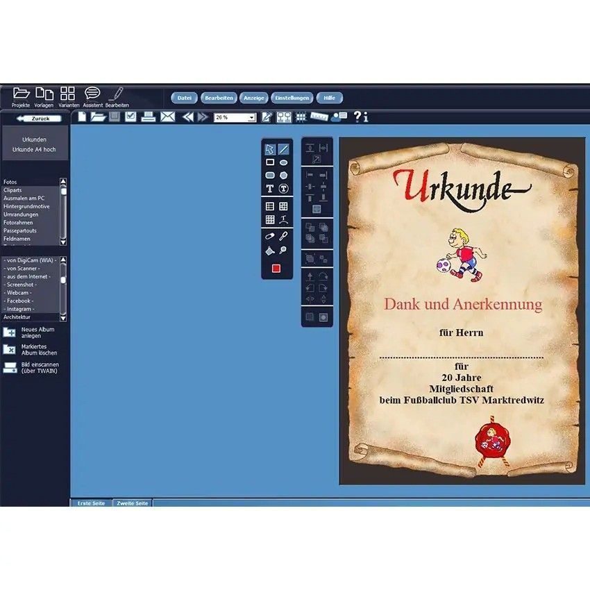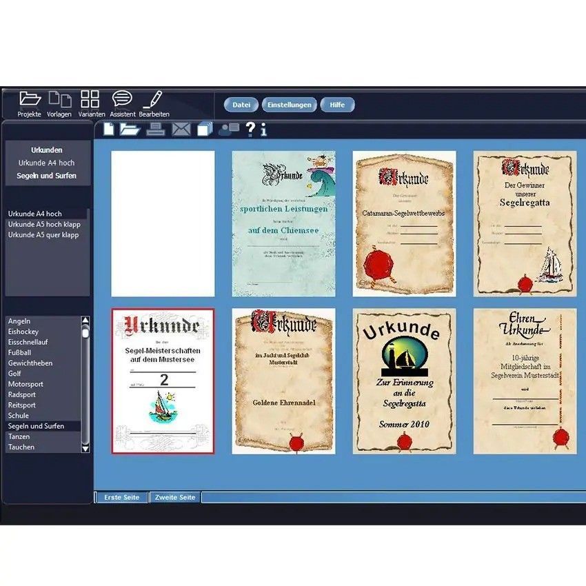 Urkunden Drucken 9.5 Professional - Fotos -Cliparts -Verein- PC Download Version