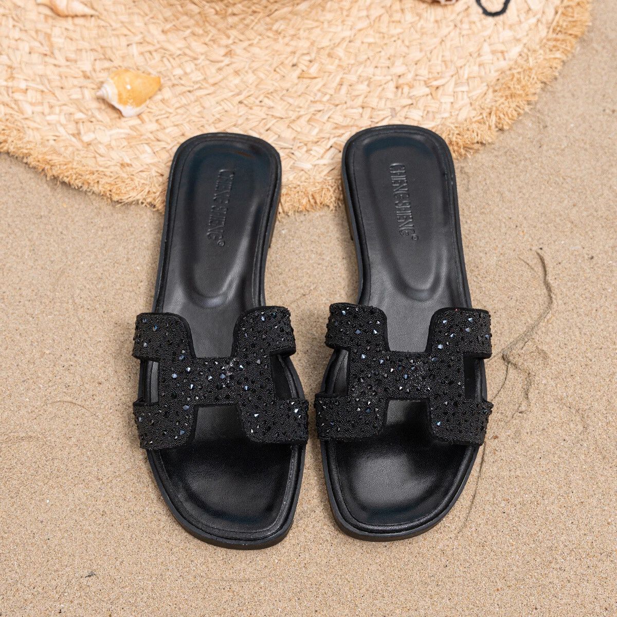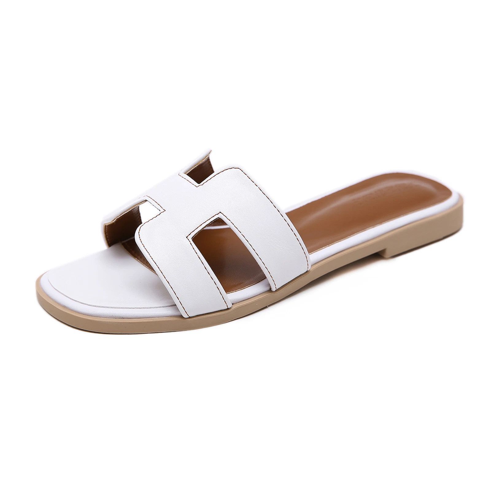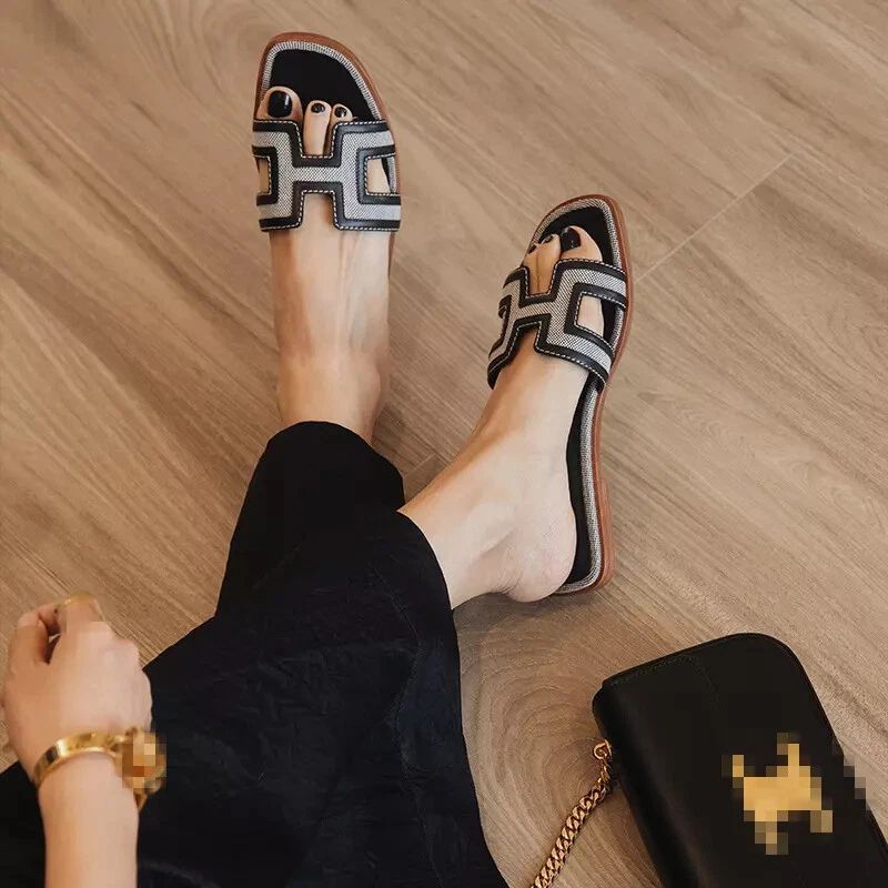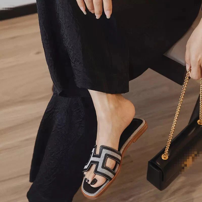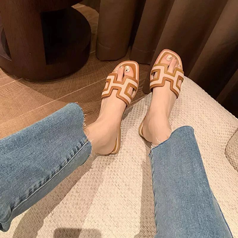 Urlaub Damen Leder Mule Slide Auf Sandalen Slipper Flache Sommer Strand Schuhe
