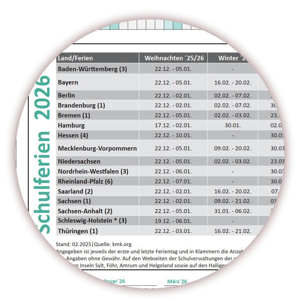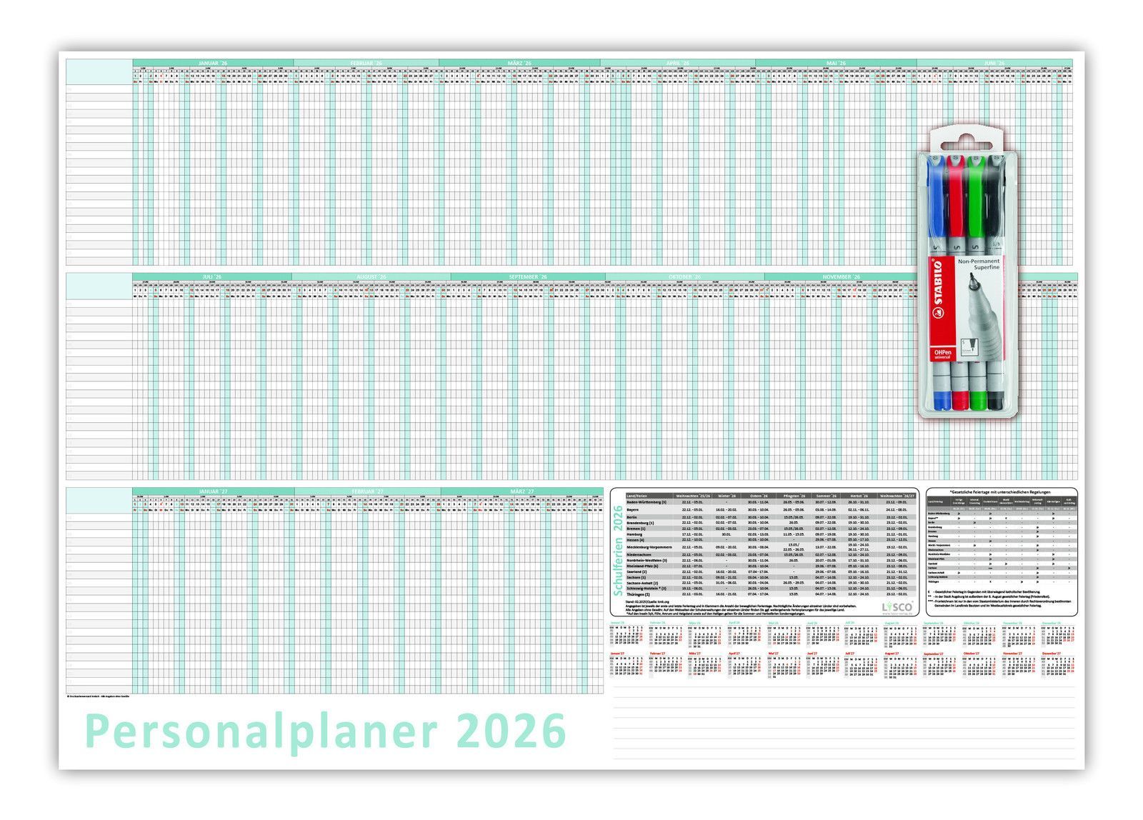 Urlaubsplaner DIN B2 2026 abwischbar inkl. Stifteset Personalplaner 70x50cm