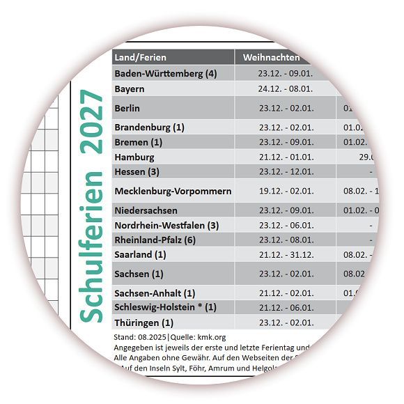 Urlaubsplaner/Personalplaner DIN B1 2027 nass abwischbar
