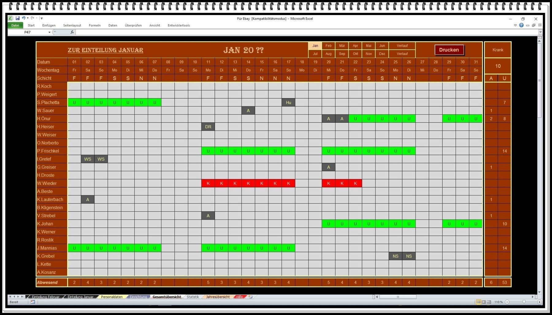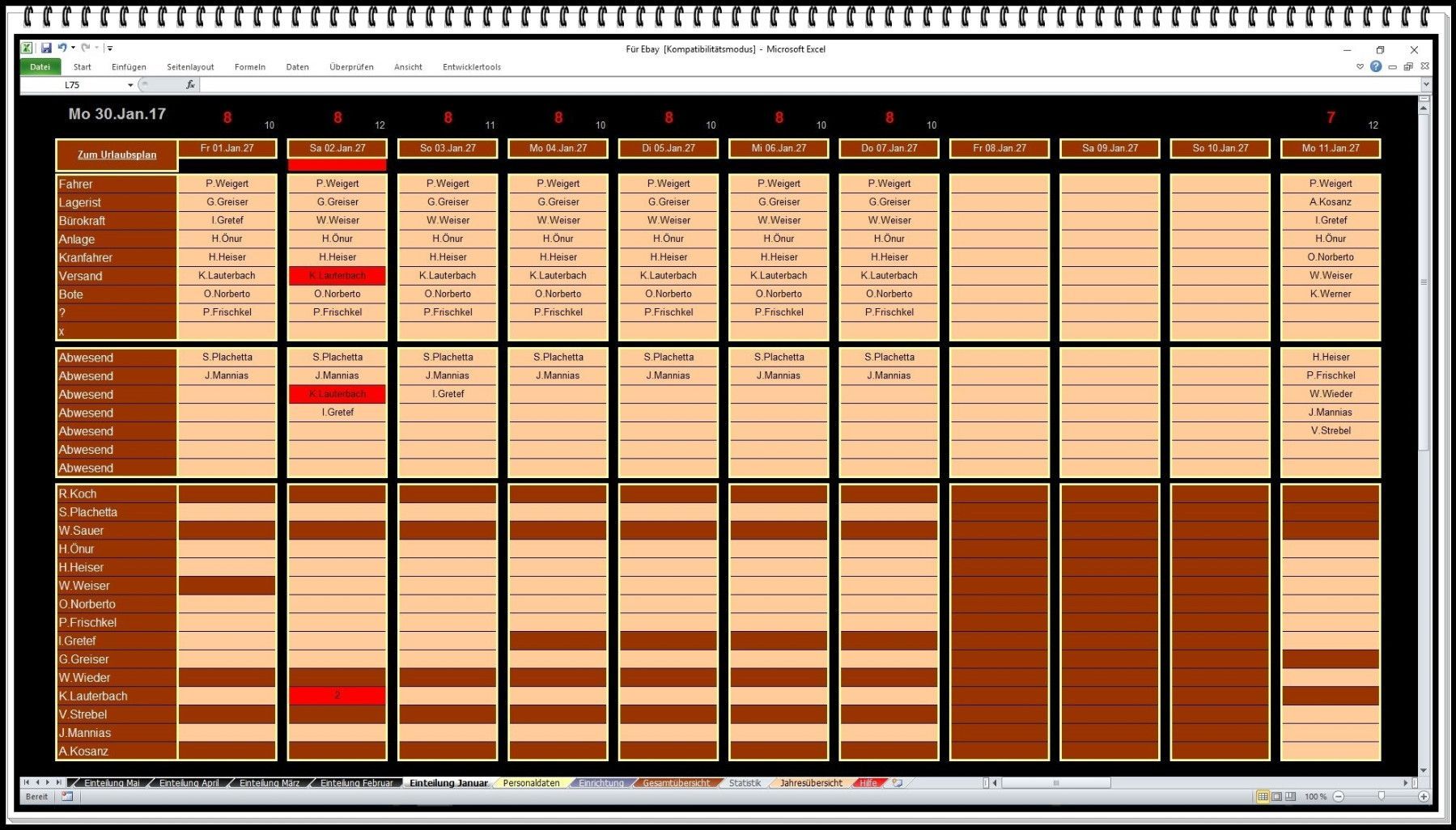 Urlaubsplaner Urlaubsplanung Urlaubsplan Schichtplan Personalplanung ohne Folgekosten