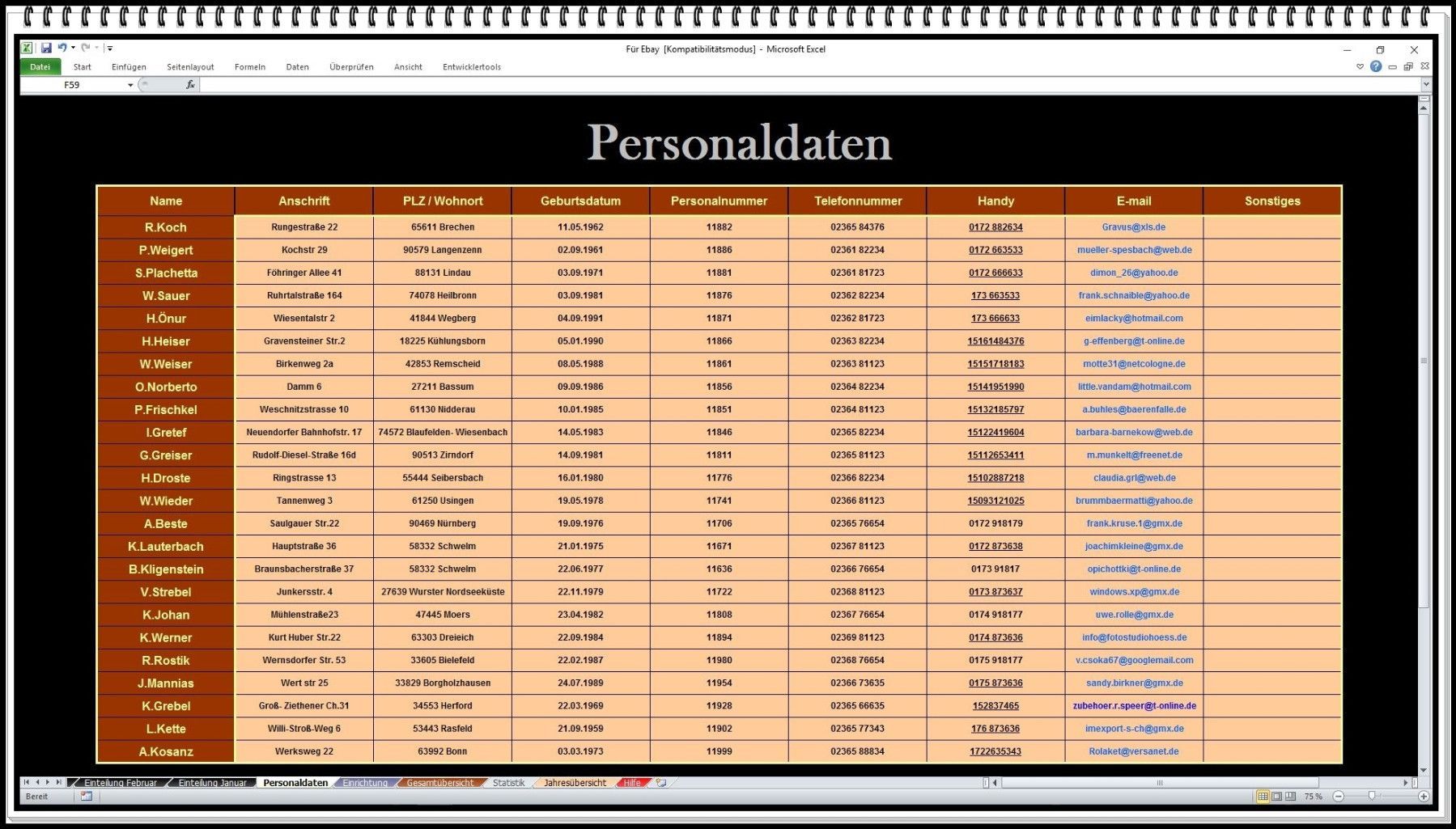 • Digitaler Monatsplaner Dienstplan Schichtplan mit Lohnabrechnung und Einsatzplan