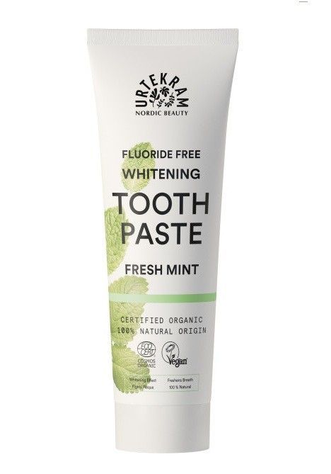 Urtekram - Fresh Mint Toothpaste Whitening - Zahnpasta - 75 ml Zahncreme mit Minze zur natürlichen Aufhellung der Zähne ohne Fluorid