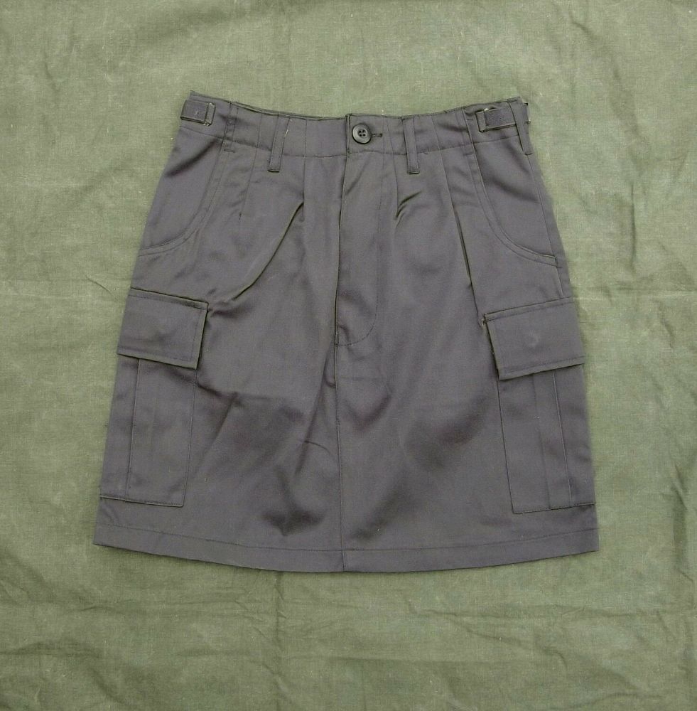 US Armee-Rock Mini-Rock im Army-Look aus strapazierfähigem Gewebe. Material: 65% Polyester 35% Baumwolle. Farbe: schwarz Größen: 34, 36, 38, 42 Größenangaben: Größe 34: Bundweite ca. 33 cm, Länge ca. 43 cm. Größe 36: Bundweite ca. 36 cm, Länge ca. 44 cm. Größe 38: Bundweite ca. 37,5 cm, Länge ca. 45