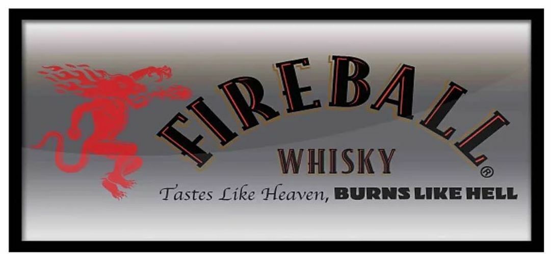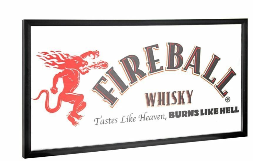 US Bar Spiegel Fireball Whiskey ca 38 x 76 cm Tastes like Heaven burn like Hell