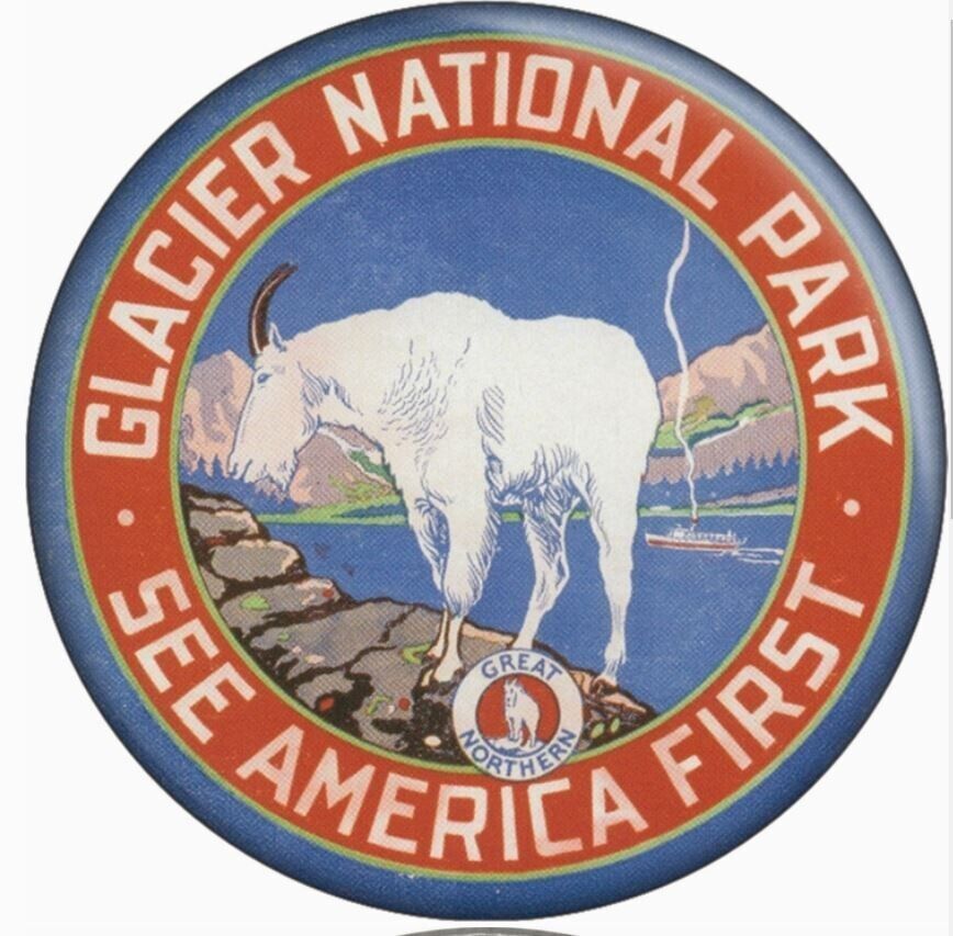 cooles US Magnetschild für den Kühlschrank ! Glacier National Park See America First - Great Northern Replik eines alten Eisenbahnplakates der Great Northern Railway Größe des Magnetschildes ca. 5,7 cm Durchmesser Lizenzierte Neuware Achtung: Nicht geeignet für Kinder unter 3 Jahren
