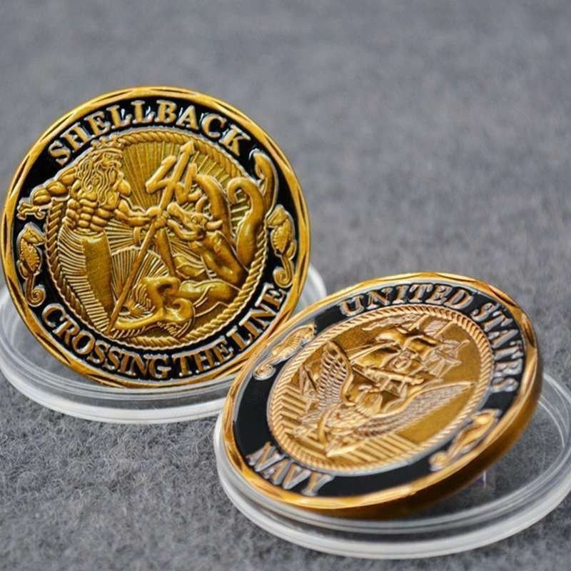 Schöne Medaille von US Navy Shellback Crossing the Line Sailor wie abgebildet Technische Information zum Artikel Größe: 40mm Erhaltung: Polierte Platte (Optische Mängel möglich) Verpackung: Kapsel Ideal für Sammler oder auch einfach nur ein schönes Geschenk.