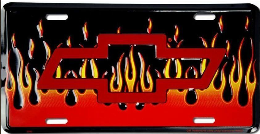 US Blechschilder im US Nummernschildformat ( 12 x 6 inch = ca. 30 x 15 cm ) Chevrolet Chevy Bowtie Flames vorgebohrte Löcher lizenzierte Neuware, ovp - incl. Versand Abholung in unserem Ladengeschaeft Retro World in 73563 Mögglingen - Lauterstrasse 27 möglich !