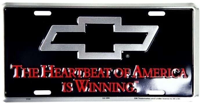 US Blechschilder im US Nummernschildformat ( 12 x 6 inch = ca. 30 x 15 cm ) Chevrolet Chevy: The Heartbeat of America is winning vorgebohrte Löcher lizenzierte Neuware, ovp - incl. Versand